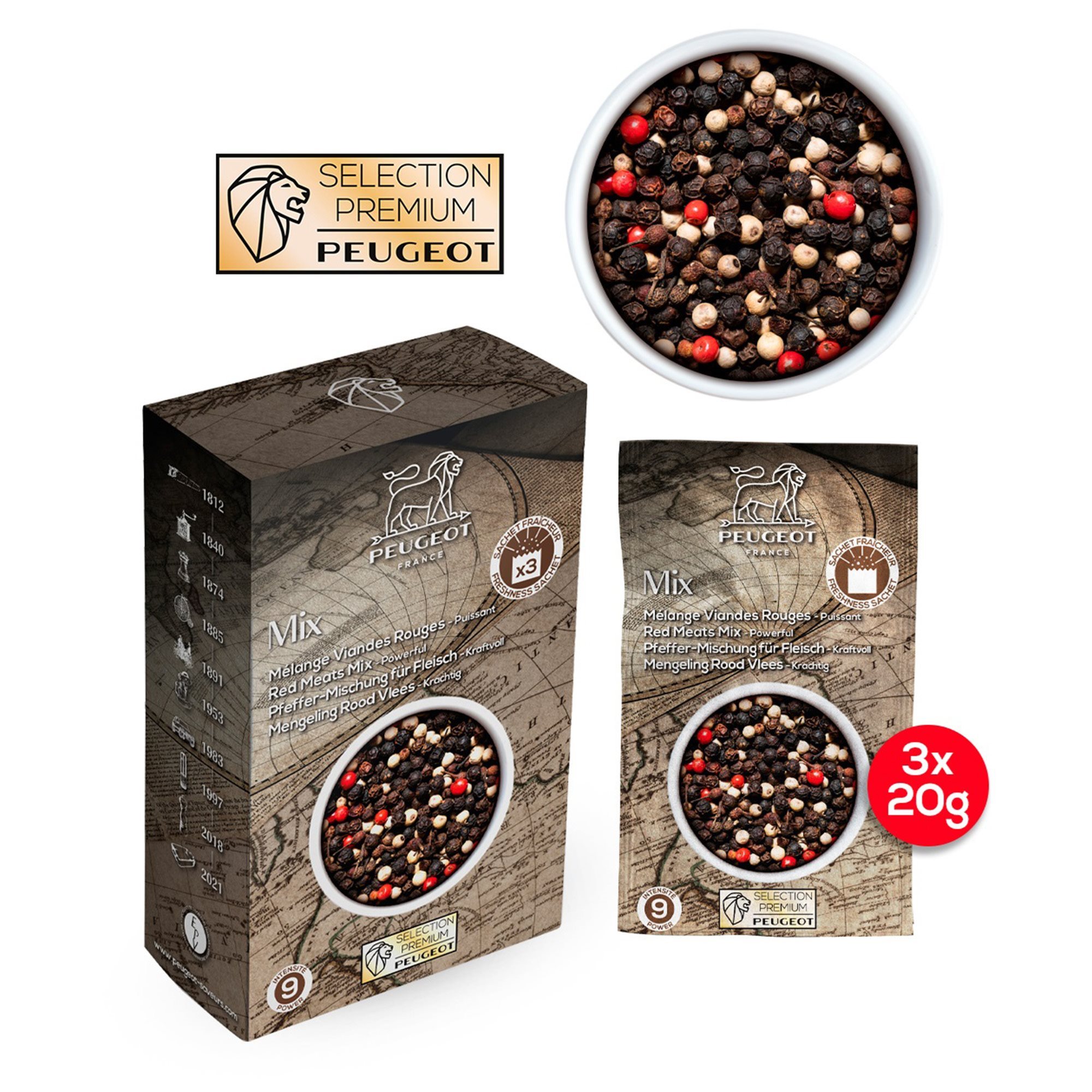 Тази фина смес от черен пипер на марката Peugeot е внимателно подбрана, за да осигури сила и топлина, за да допълни всяко ястие с червено месо.
