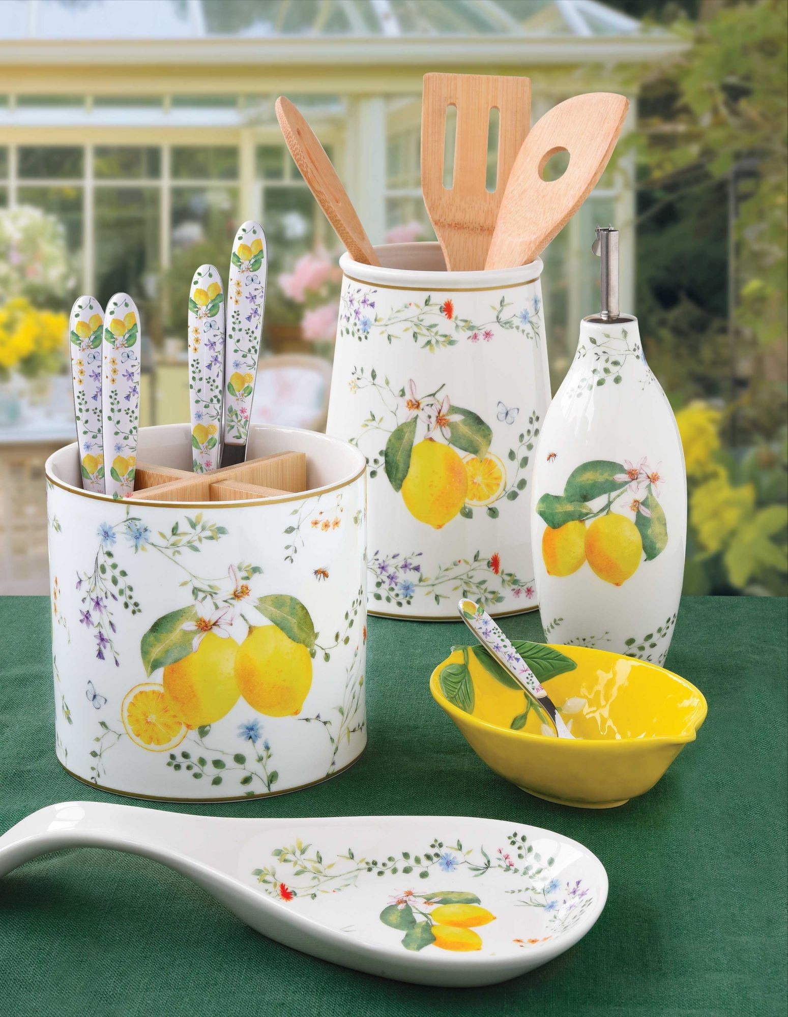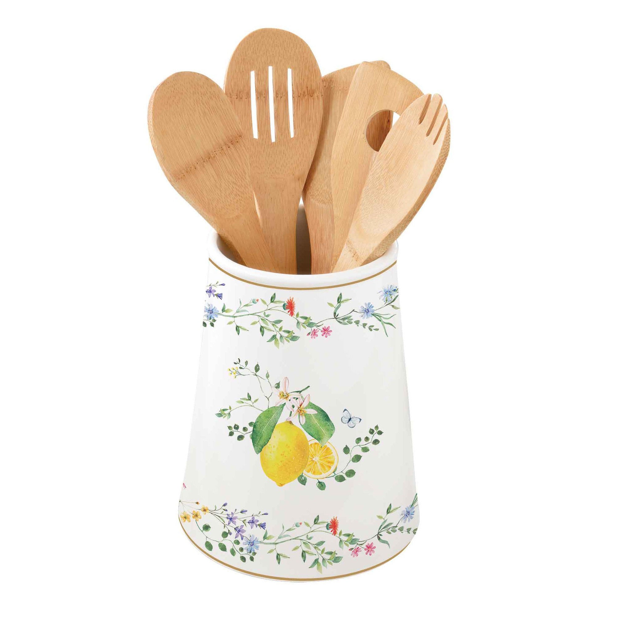 Комплект кухненски прибори, 6 броя, произведен от Nuova R2S, с порцеланова стойка.