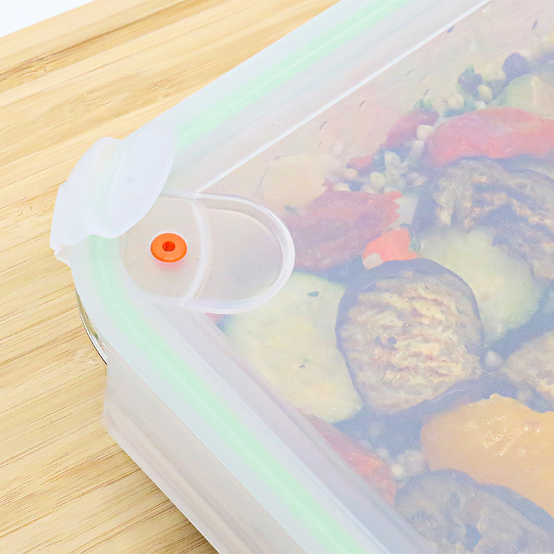 Капаките, направени от пластмаса, снабдени с уплътнение, направено от силикон, позволяват получаване на херметично затваряне, предотвратяване на разливането на течности и запазване на хранителните стойности и свежестта на храната за по-дълго време. Хигиенният материал заедно със системата за затваряне, базирана на клипове, предотвратява отделянето на миризми в хладилника.
