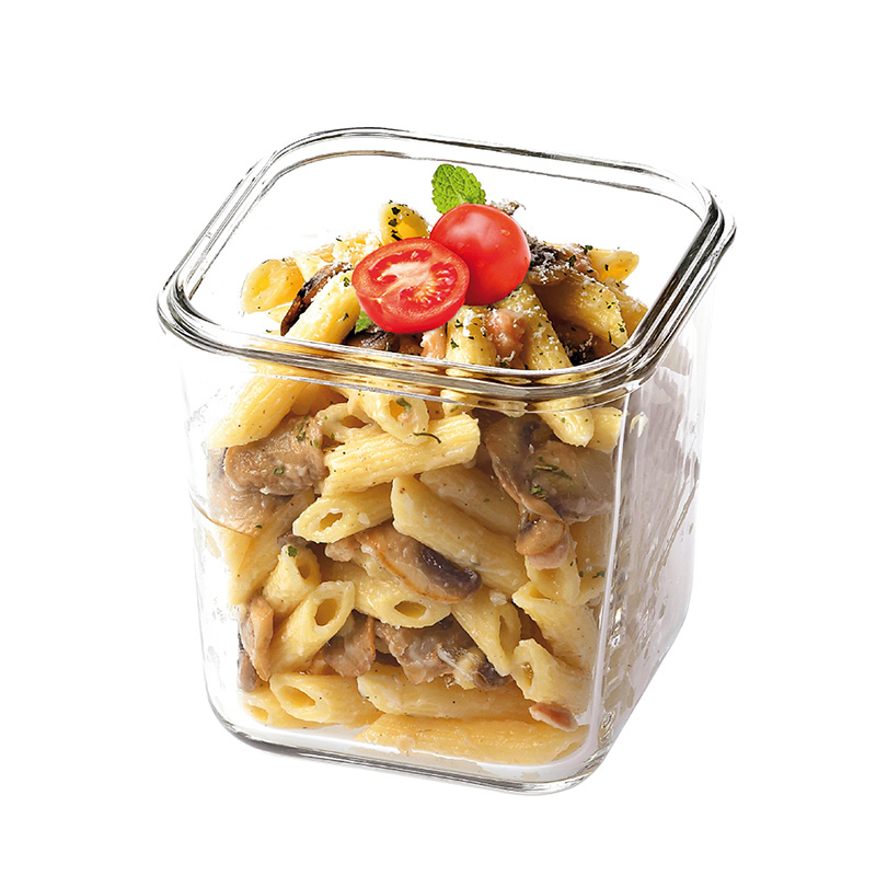 - 1 квадратен контейнер за съхранение на храни, вместимост 920 ml, размер 115 × 115 × 114 mm;