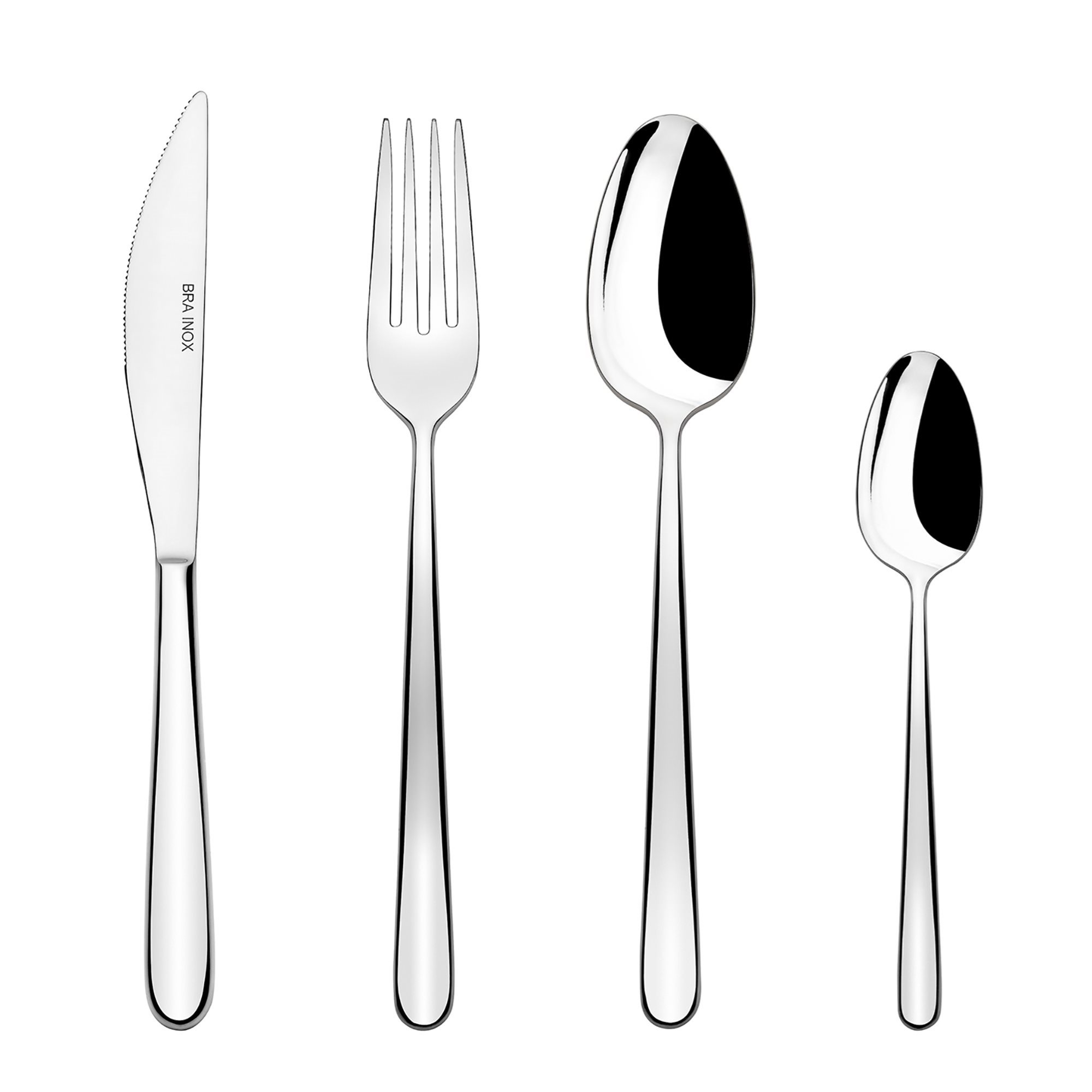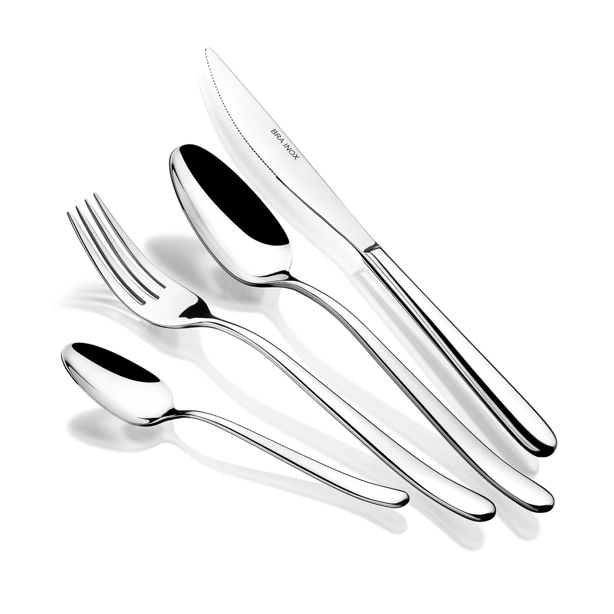 Комплект прибори за хранене "Napoli" от 75 части - марка BRA - изработен от неръждаема стомана 18/10, със съвременен дизайн, който съчетава функционалност с елегантност.