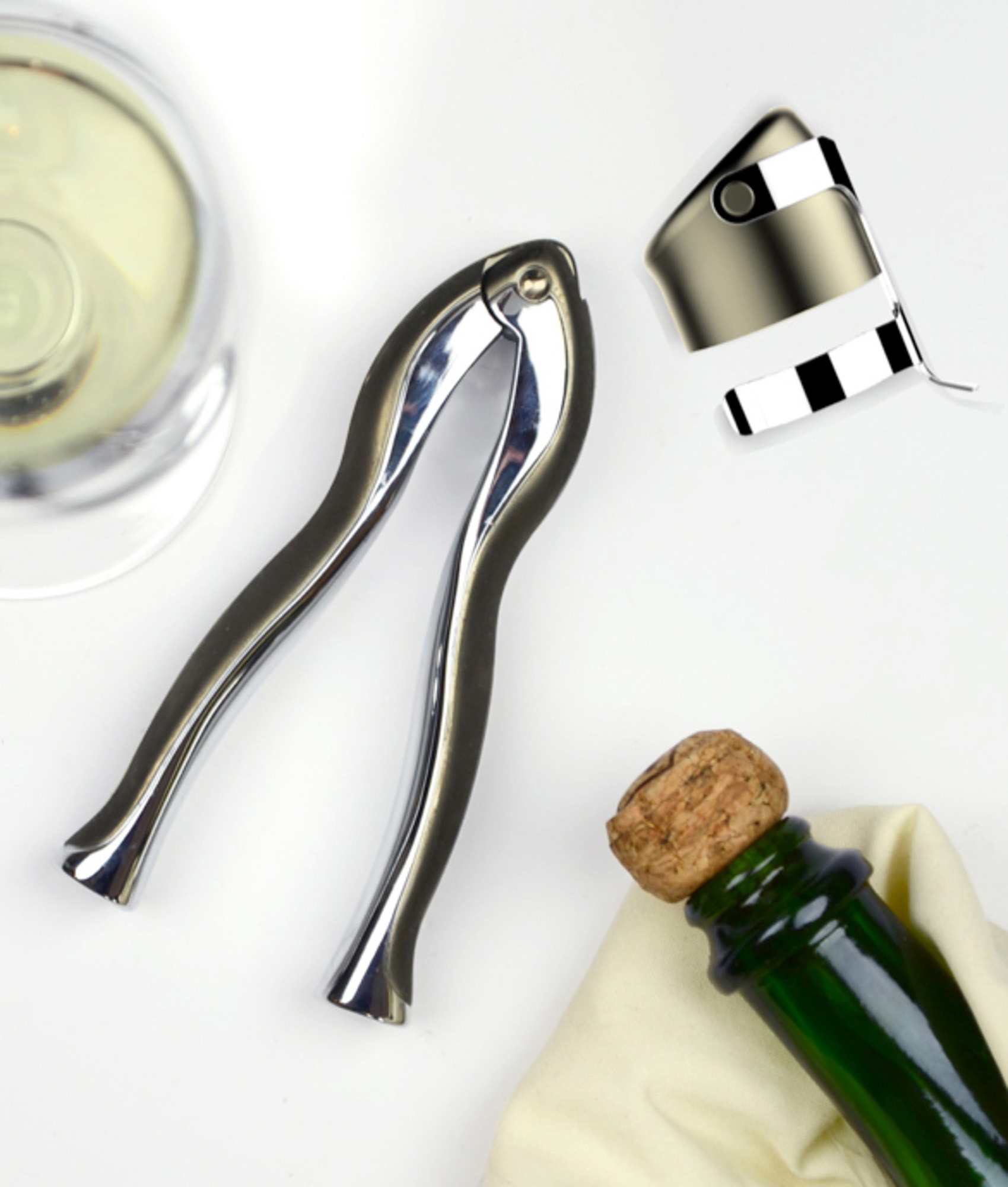 Можете да използвате клещите, за да извиете без усилие тапите и след това можете да запечатате бутилката с включената запушалка, за да запазите шампанското свежо в продължение на няколко дни.