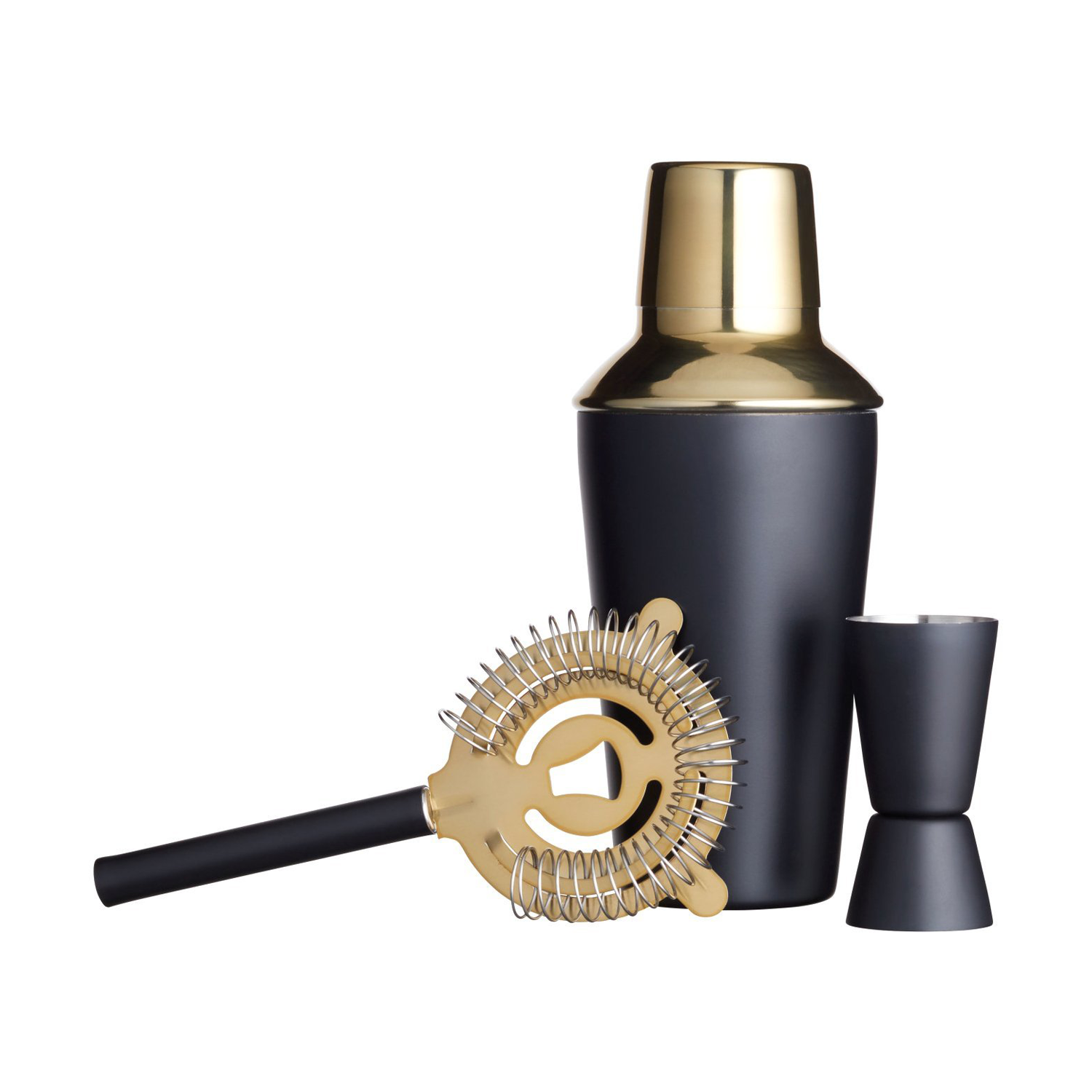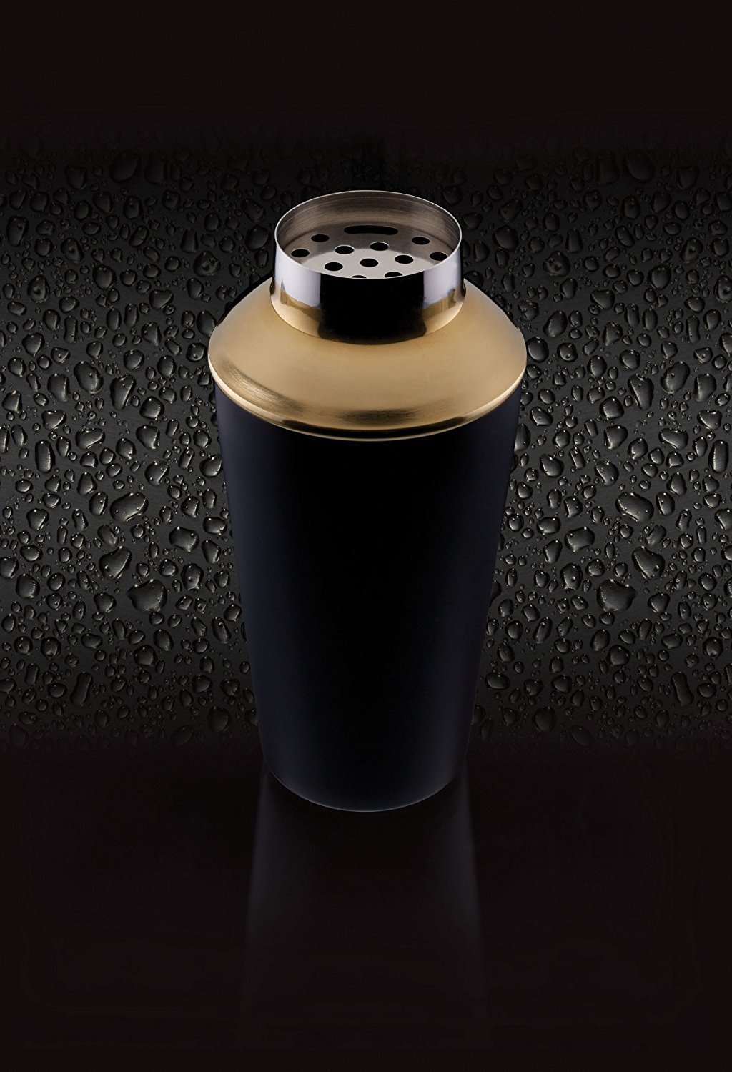 Комплектът включва шейкър с вместимост 500 мл, двойна чаша за измерване с вместимост 25/50 мл и цедка за коктейли.
