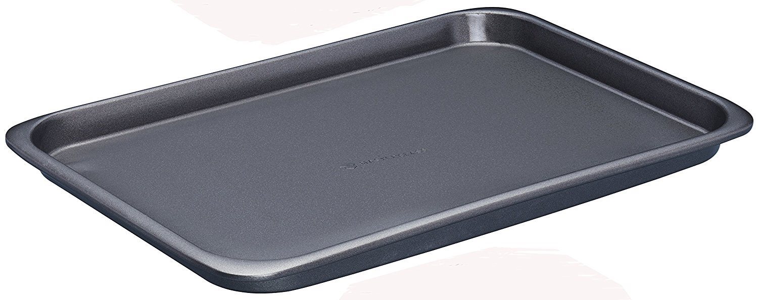 Комплект за печене, от гамата MasterClass, произведен от Kitchen Craft, съставен от 7 части, изработени от въглеродна стомана, защитени с незалепващ слой без BPA, размери само 41 x 31 x 9,5 cm. Съхранението на съдовете за печене е ефективно и компактно, поради факта, че 7-те тави могат да се съхраняват една в друга.