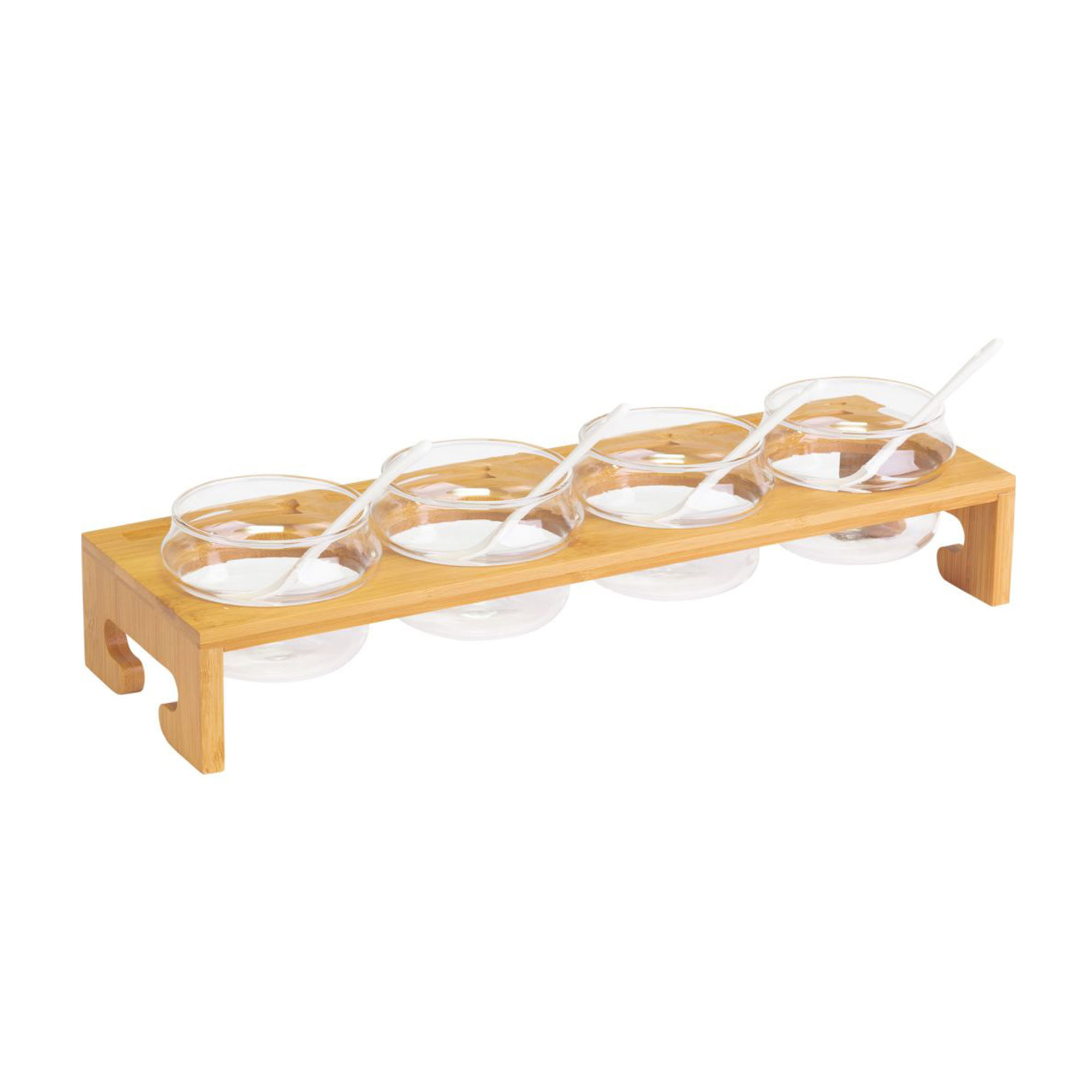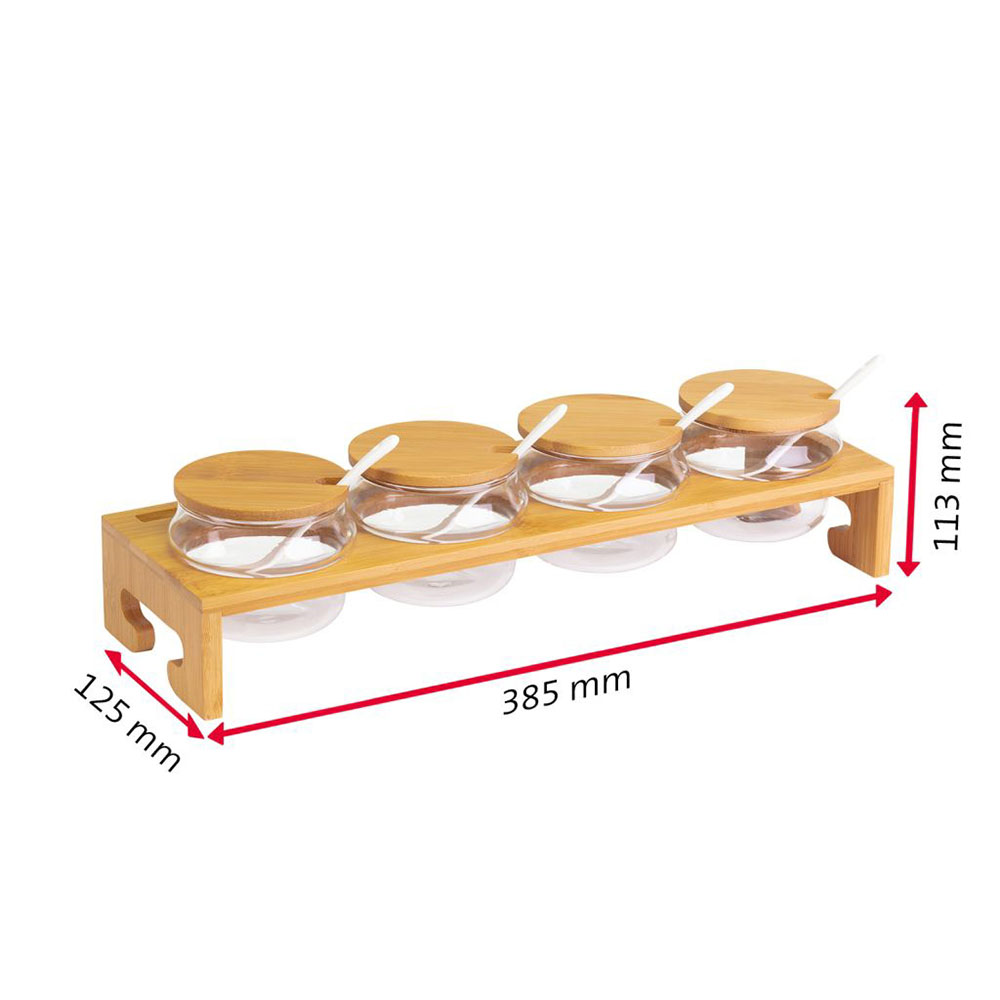 - 4 стъклени контейнера с вместимост 200 мл, с бамбукови капаци