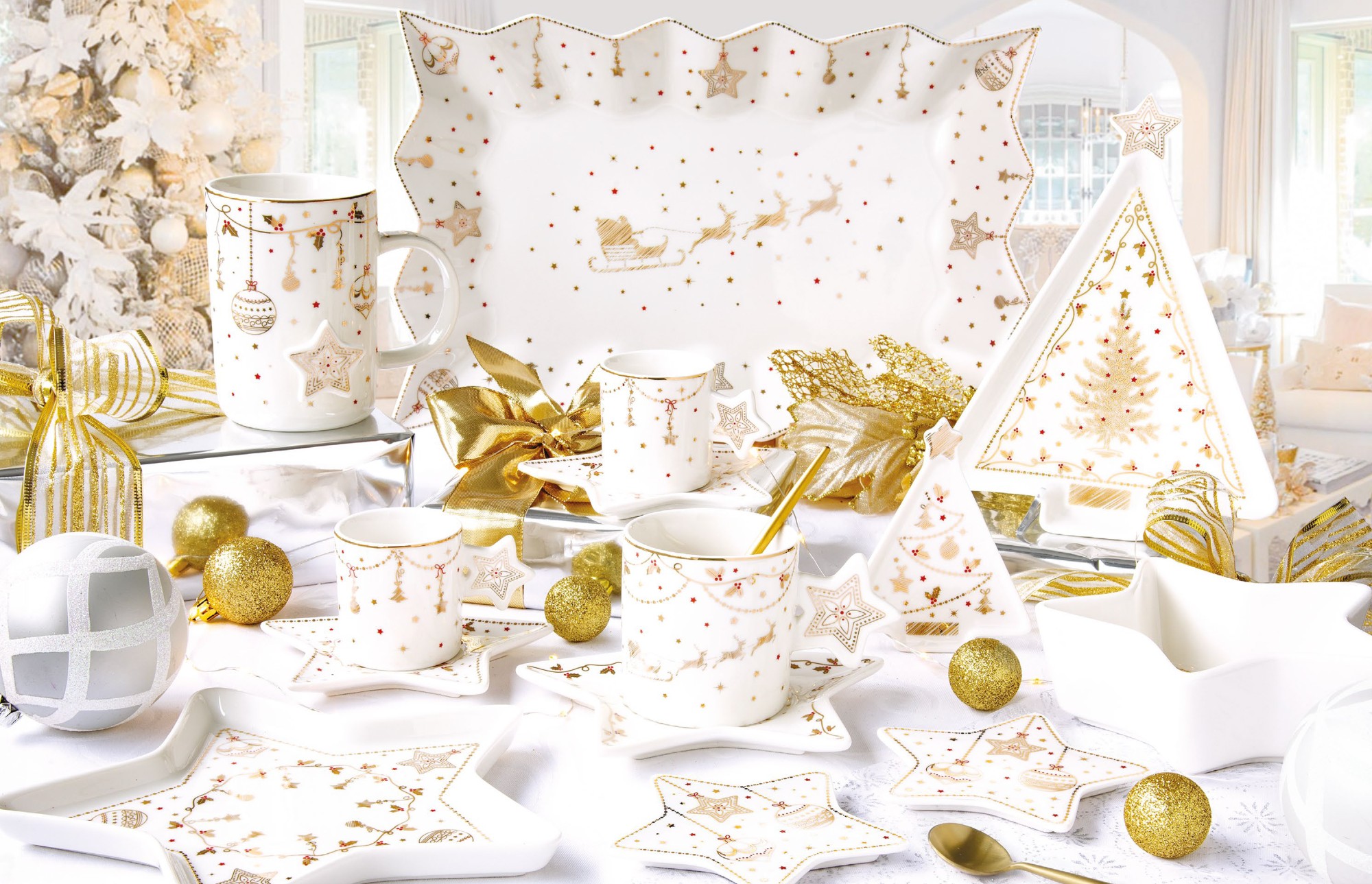 - 6 порцеланови купи, а именно 5 триъгълни купи и 1 купа с форма на звезда;