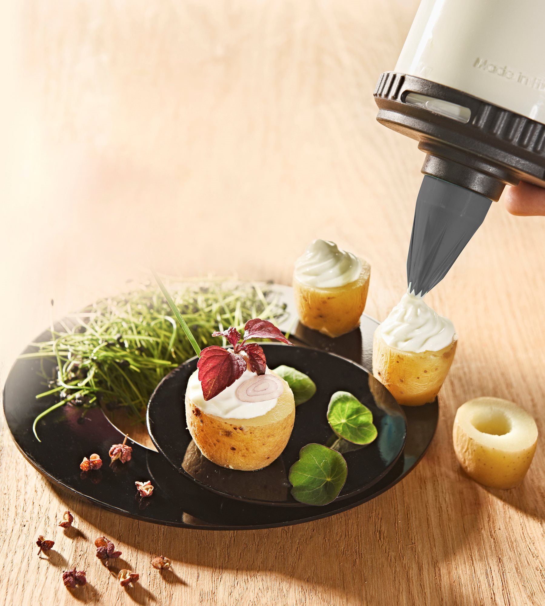 Спринцовката Le Tube Pro е съвместима с всички дюзи на de Buyer , изработени от тритан.