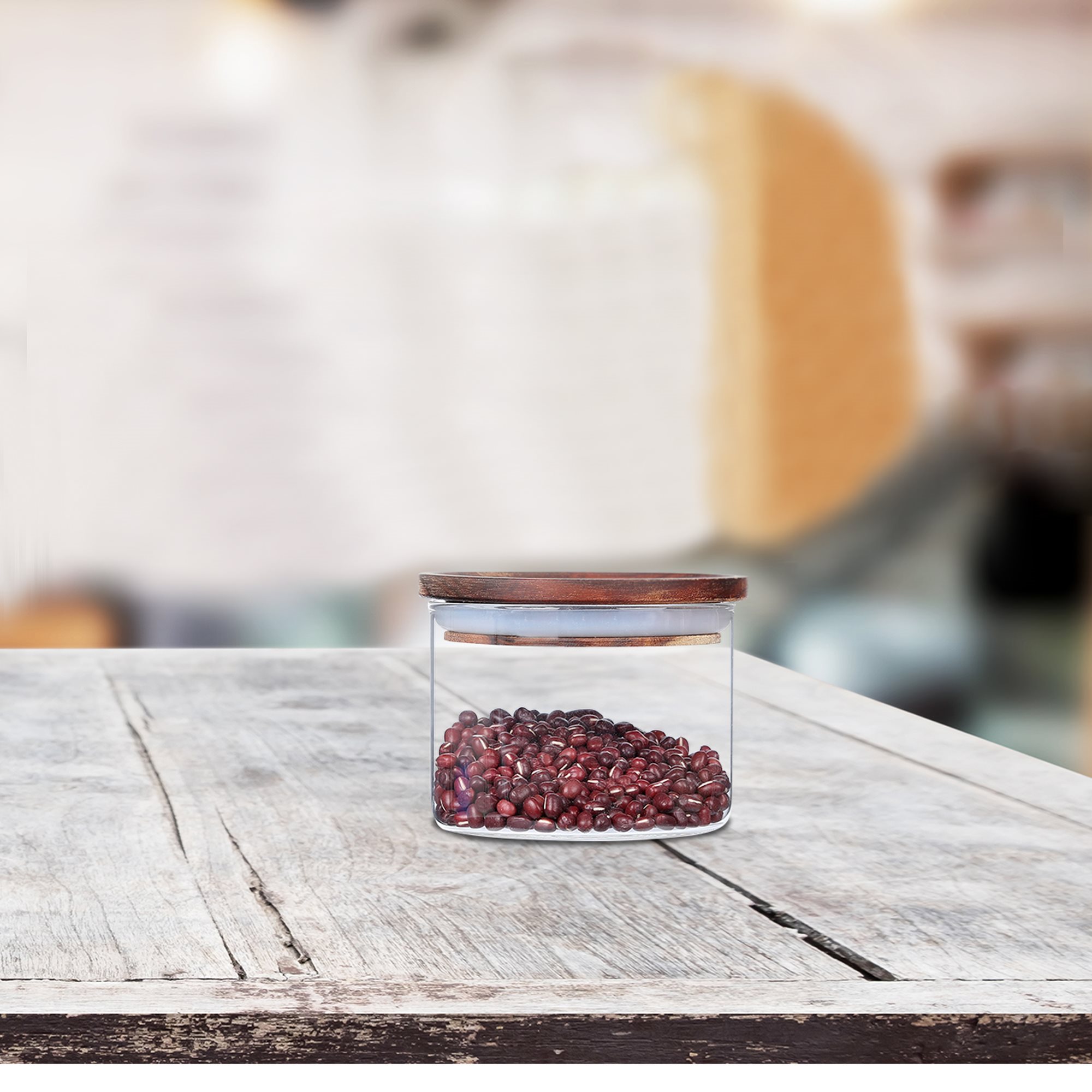 Време е да се сбогувате с кухненското претрупване, като използвате този елегантен контейнер, направен от боросиликатно стъкло и дървен капак на акация. Височината на контейнера е 7 см, което го прави подходящ за съхранение на подправки.
