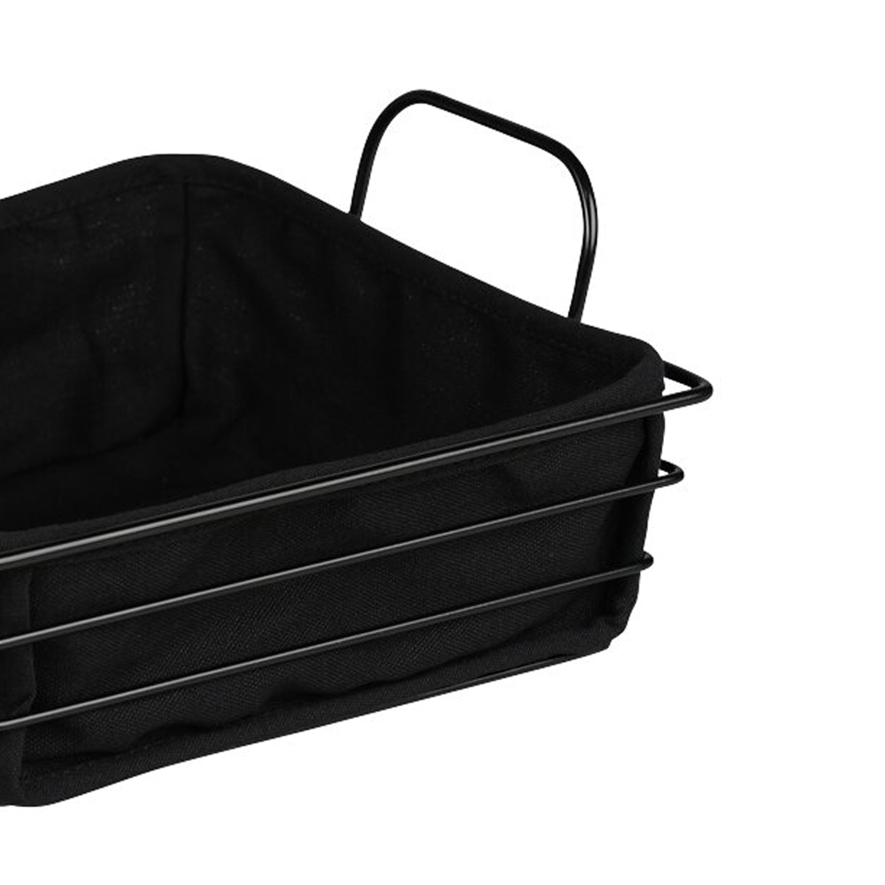 Изработен от черен метал с подвижна текстилна подплата, която може да се измие при 30°C, тя е лесна за поддръжка. Размерите от 25,5 × 22,5 см и височина 11,5 см осигуряват достатъчно място за сервиране на сладкиши, плодове и други храни.