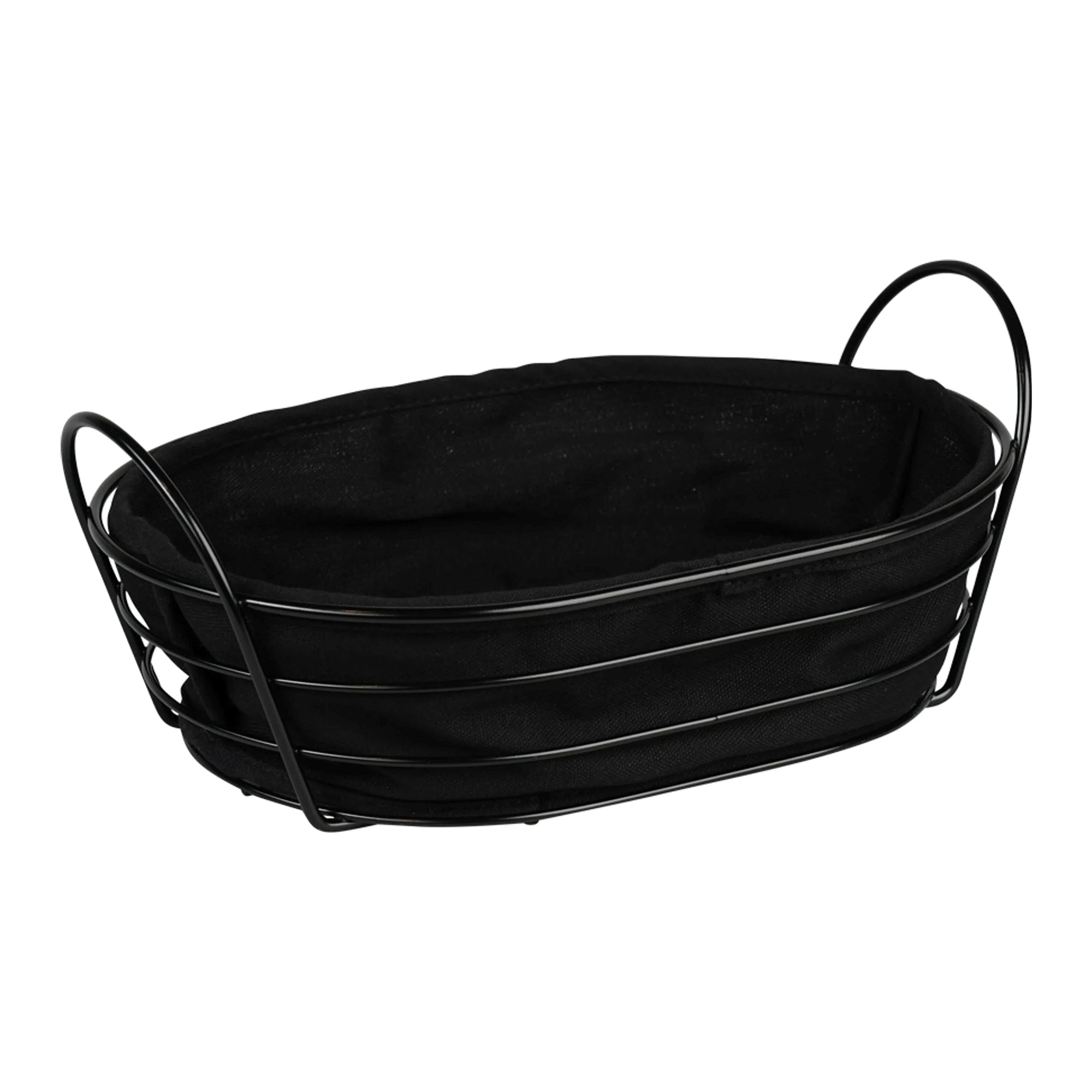 Основни предимства на кошницата за хляб и плодове: практична овална форма, подходяща за различни цели, дизайн от черен метал, лесен за поддръжка.