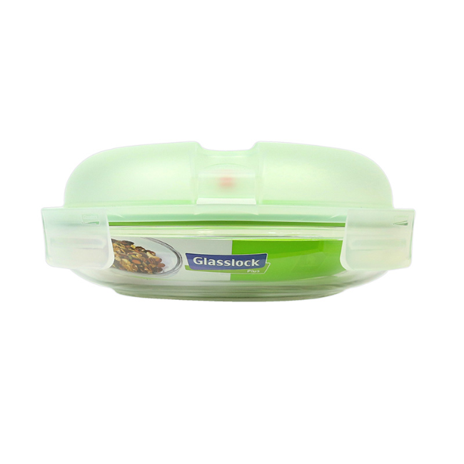 Кръгъл съд за съхранение на храни, с капак, произведен от Glasslock, вместимост 800 ml, диаметър 21 см, изработен от специално стъкло , което е устойчиво на температури между -20 и +120°C.