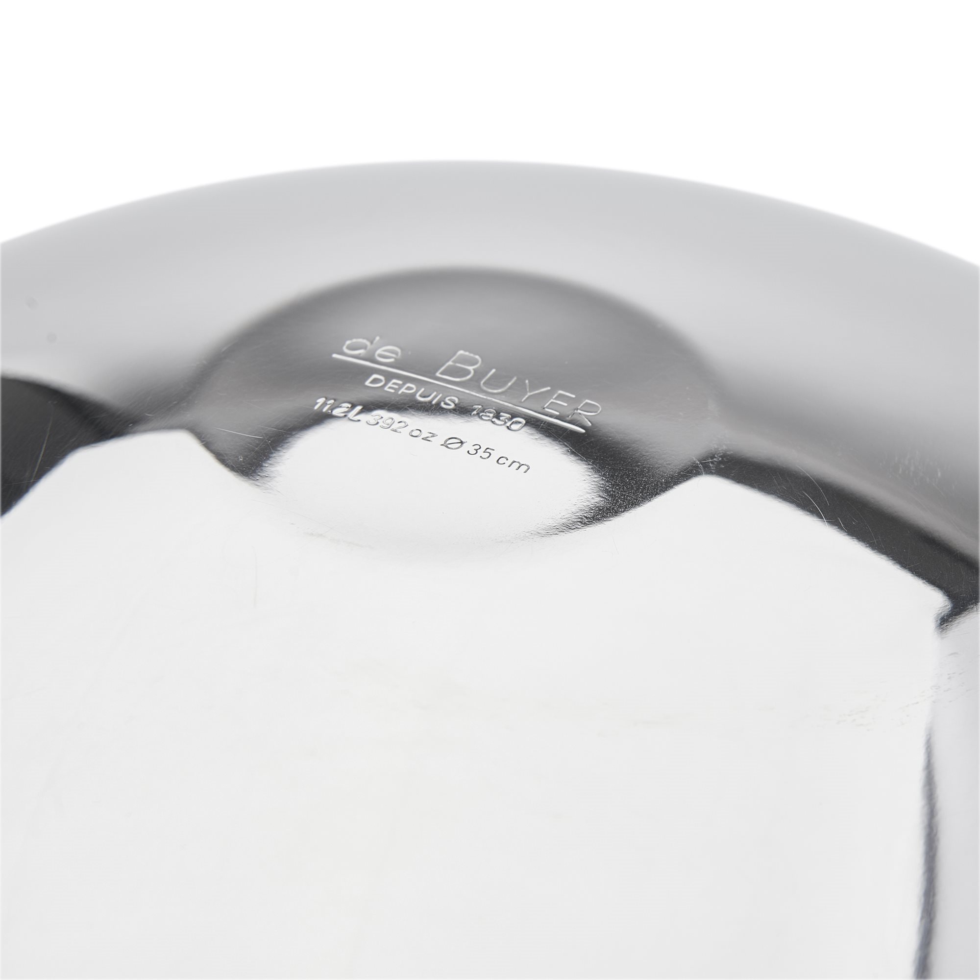 Професионална полукръгла купа, наречена "cul-de-poule" , подходяща за смесване, затопляне на водна баня, съхранение, марка de Buyer.