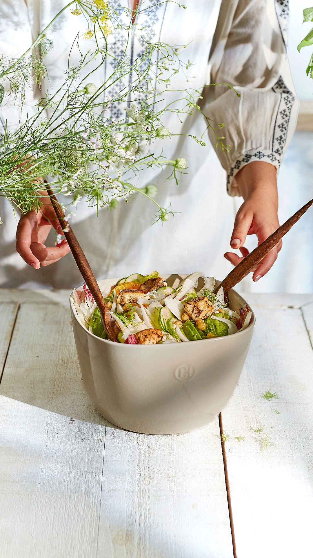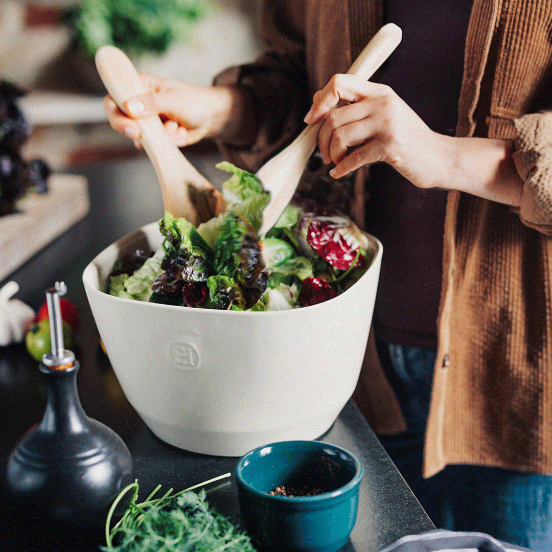 HR Ceramic® (High Resistance), разработена в лабораториите на Emile Henry, издържа на температури до 270°C и разпределя топлината равномерно по цялата повърхност на купата. Глазурата, използвана в покритието на купата, я предпазва от надраскване и начупване (можете да режете директно върху купата, без да я надрасквате), което я прави подходяща за съдомиялна машина.