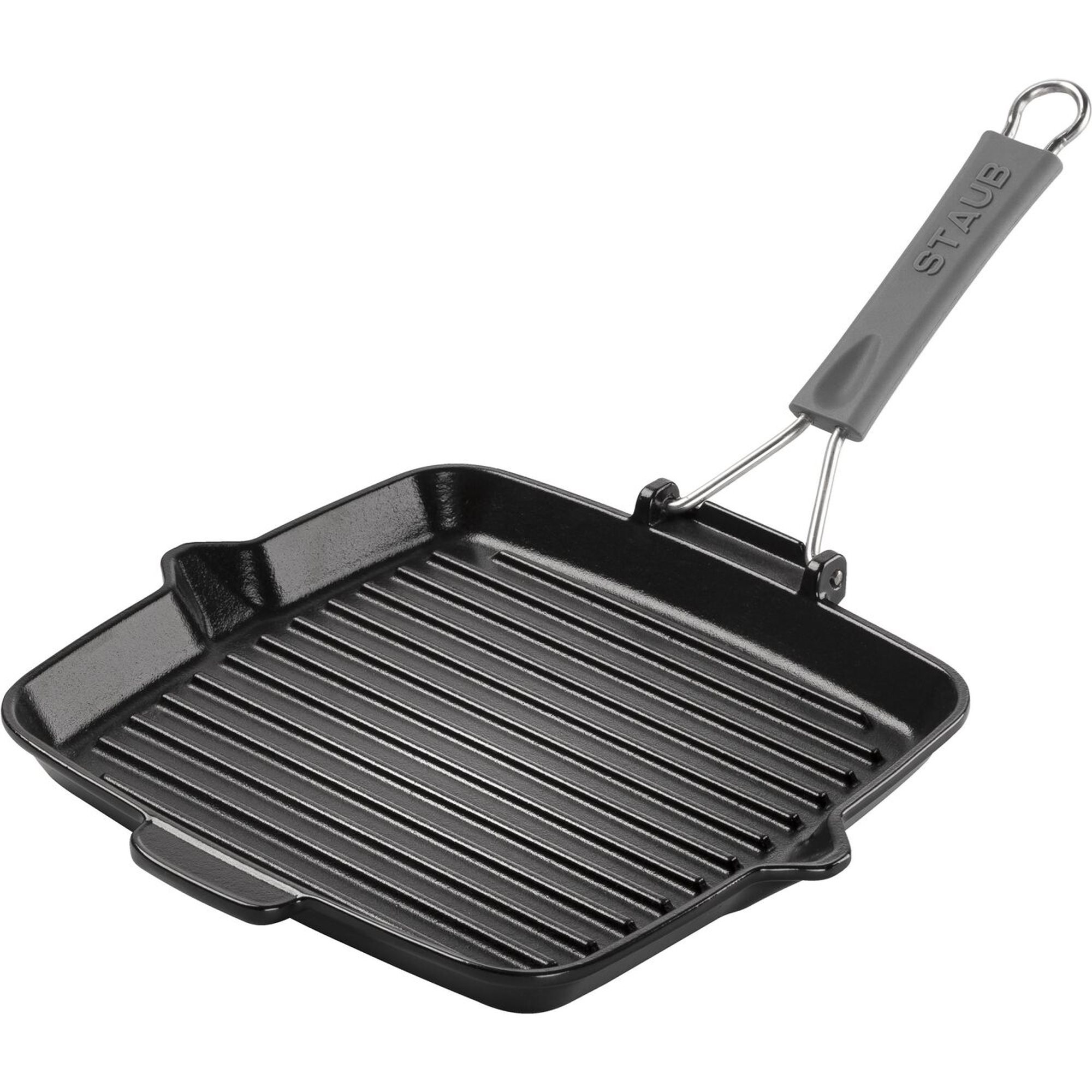Грил тиган, с квадратна форма, марка Staub, размер 24 х 24 см, изработена от чугун.