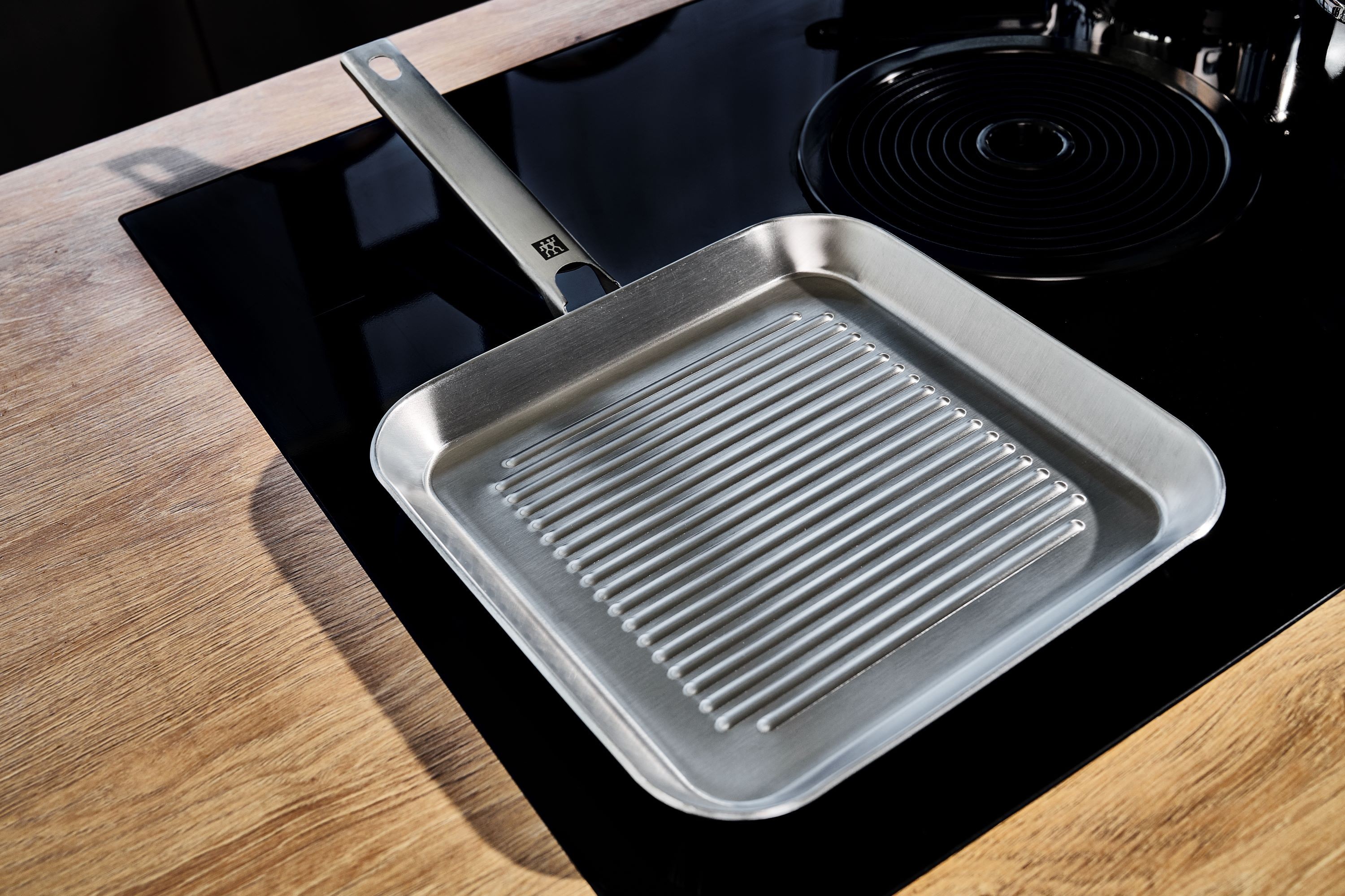 За всеки, който иска тези типични аромати на скара с отлични резултати при готвене, има грил тиган ZWILLING Plus. Грил тиганът е идеален за бързо пържене на зеленчуци или месо. С размери 24 х 24 см, той е идеален за приготвяне на бургери, колбаси и пържоли, както и за вегетариански и вегански ястия с ниско съдържание на мазнини.