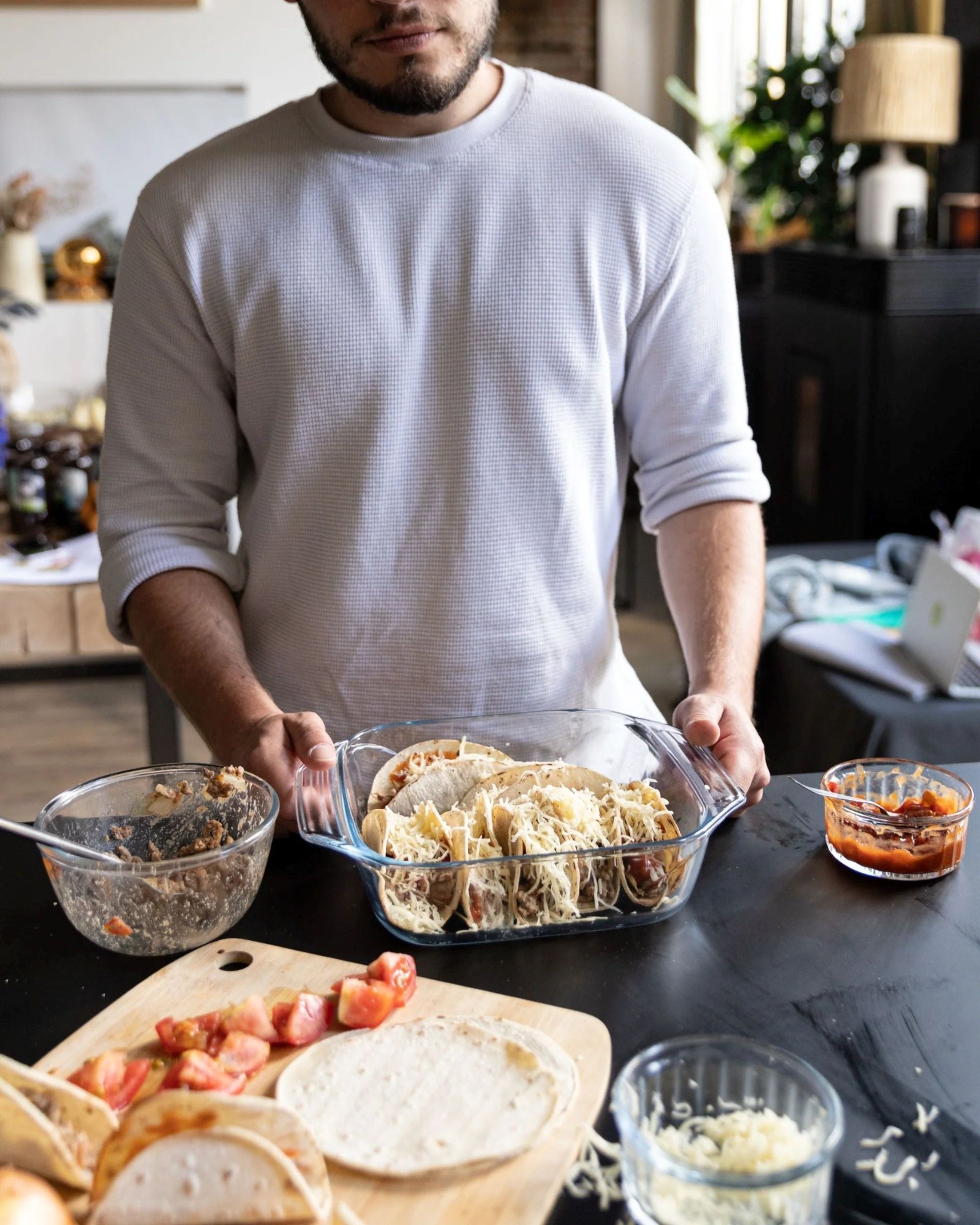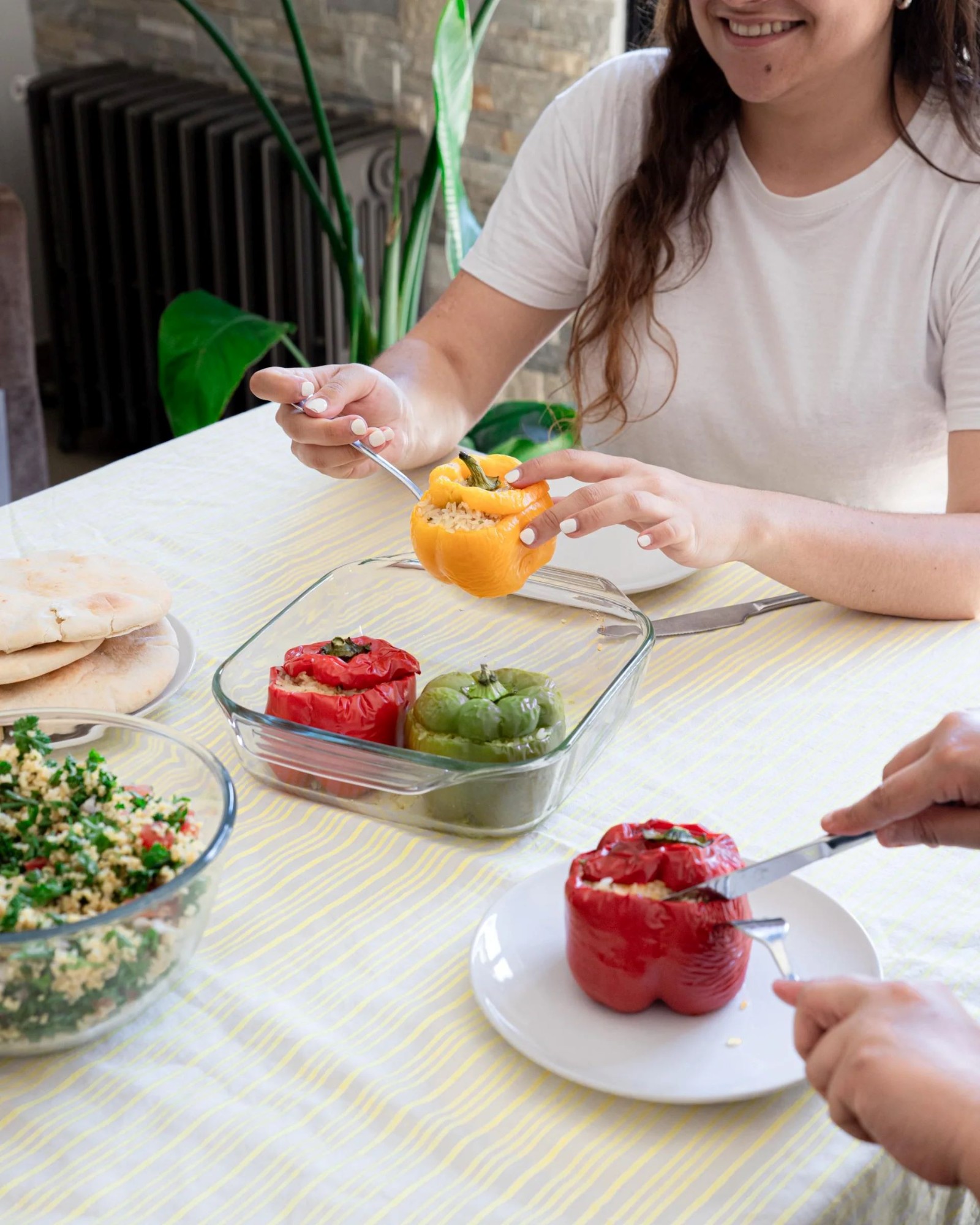 За щедри семейни ястия серията Pyrex® Let's Share е идеална. Квадратната чиния, подходяща за 4 души, изработена от боросиликатно стъкло, е изключително устойчива и практична, и може лесно да се носи до масата благодарение на достатъчно големите си странични дръжки.