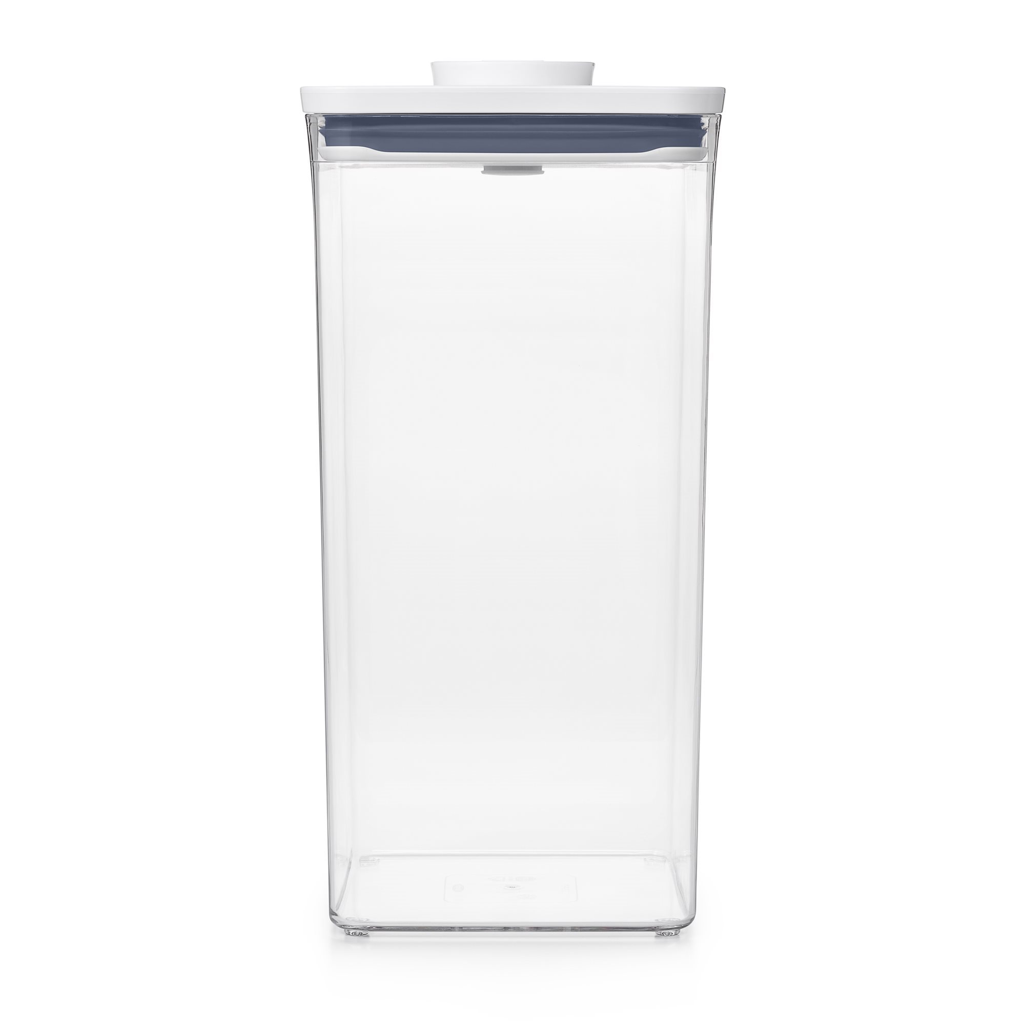 Квадратна гюле, гама "POP", марка OXO, изработена от прозрачна пластмаса без BPA, за да може лесно да види какво има вътре.