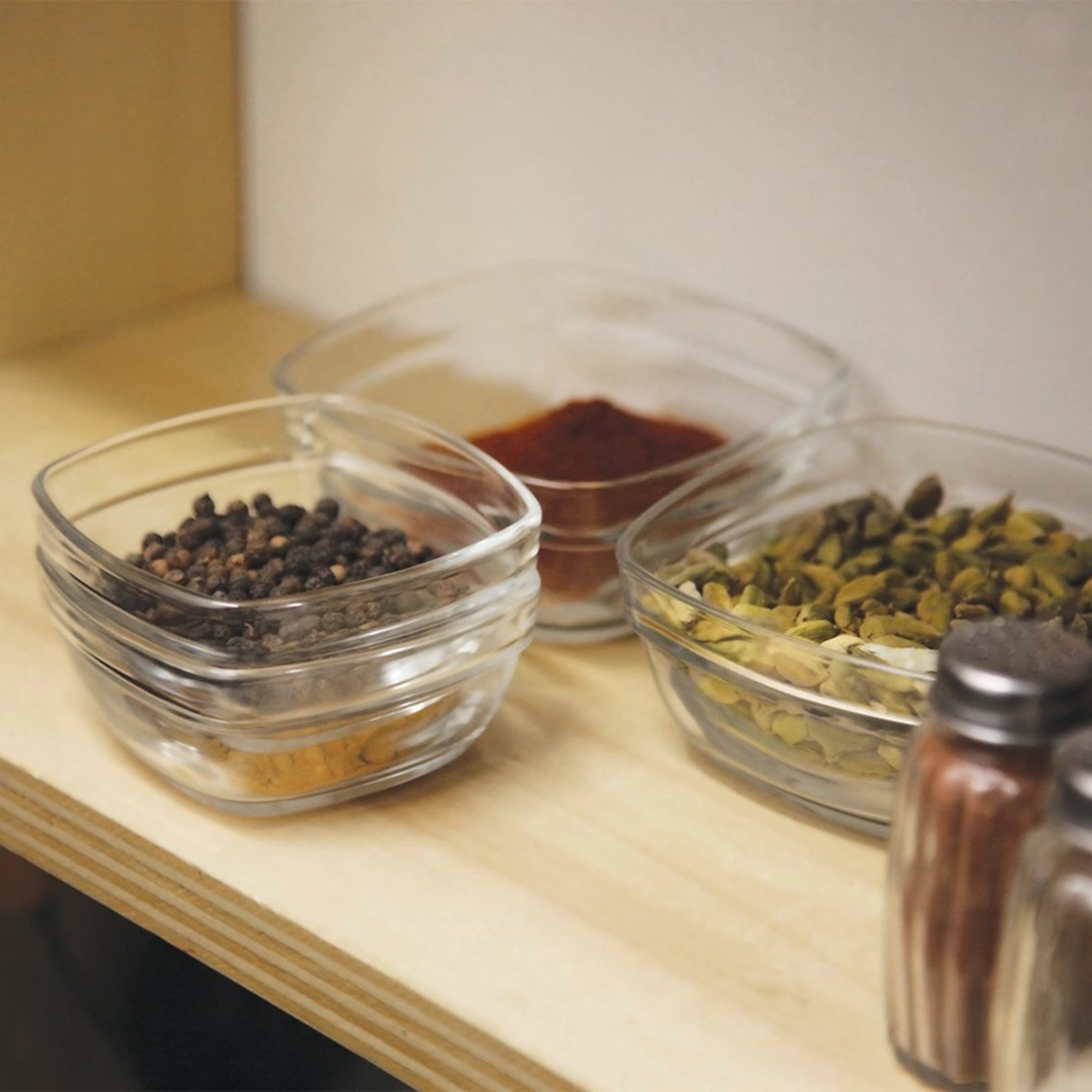 Квадратните купи Lys се характеризират с яснота, простота, полезност и, разбира се, красота. Те са прозрачни, подреждат се един върху друг и могат да се почистват в съдомиялна машина и да се използват в микровълнова печка.