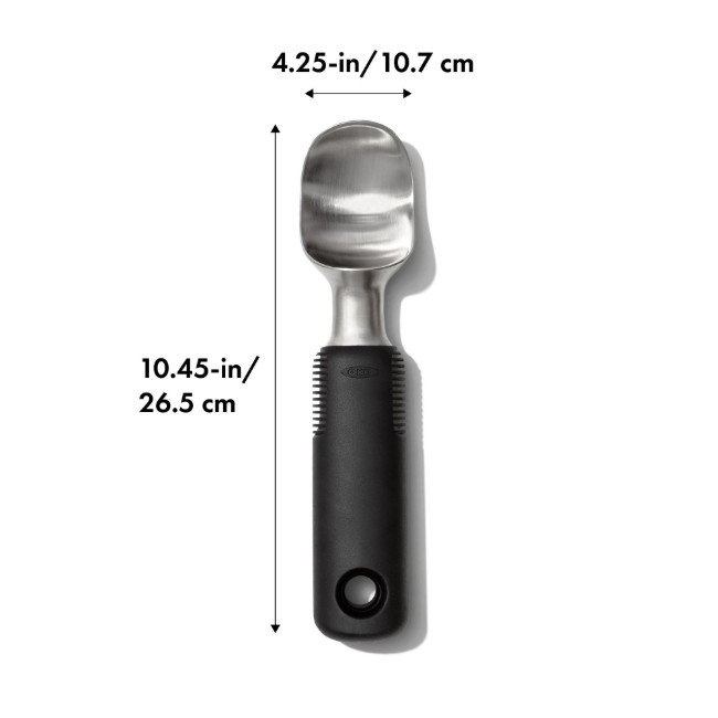 Лъжица за сладолед от неръждаема стомана с размери 26,5 х 10,7 см марка OXO.