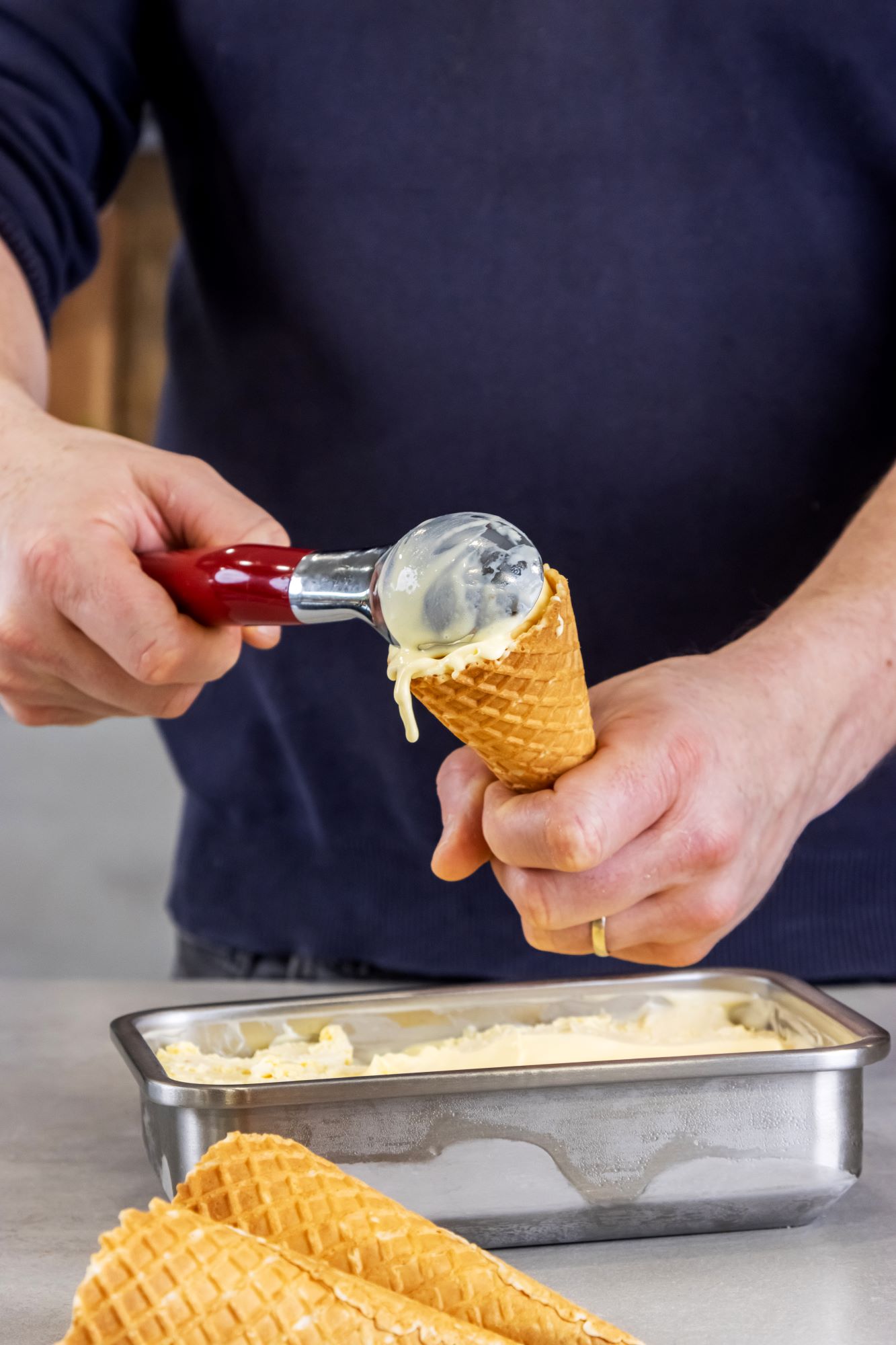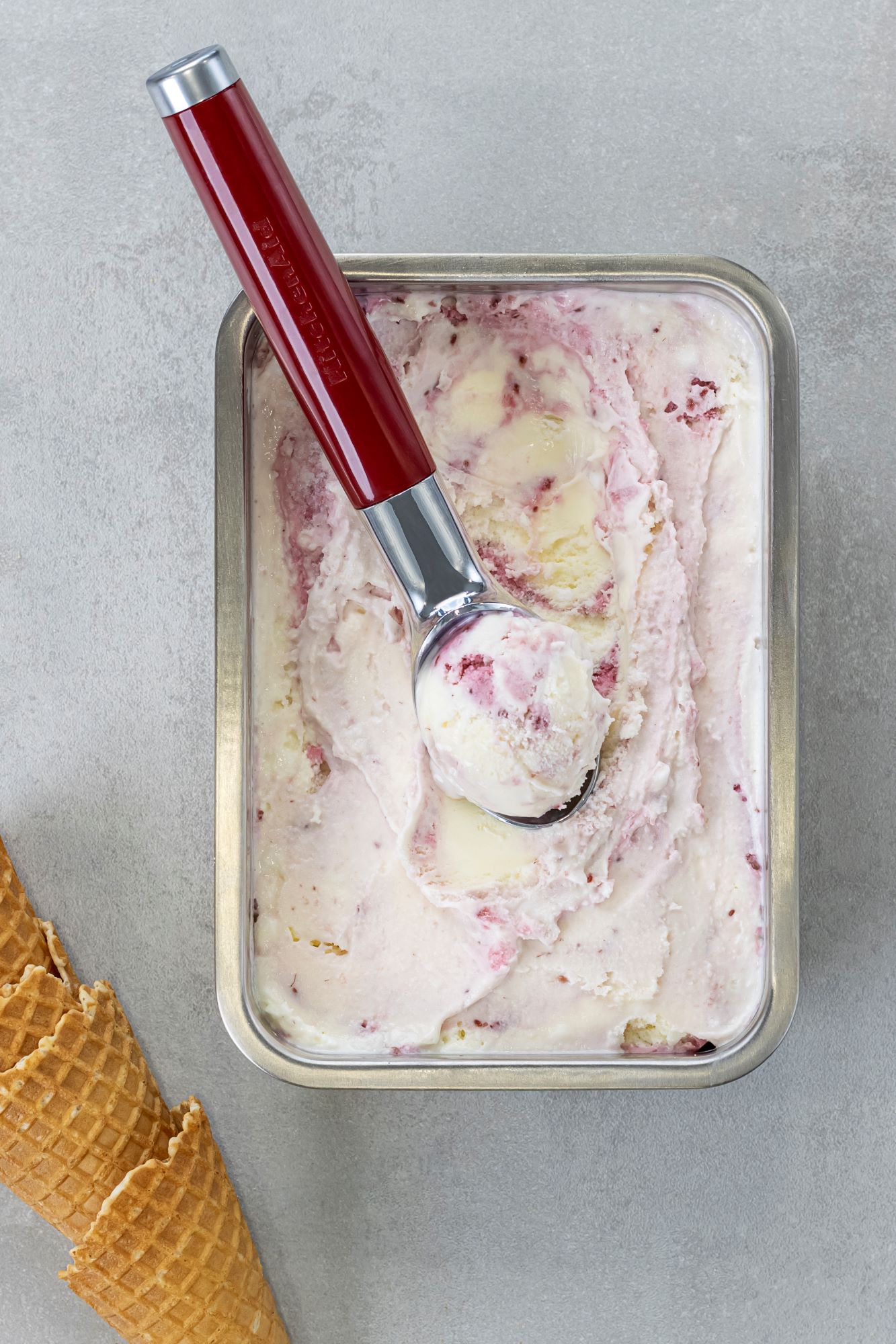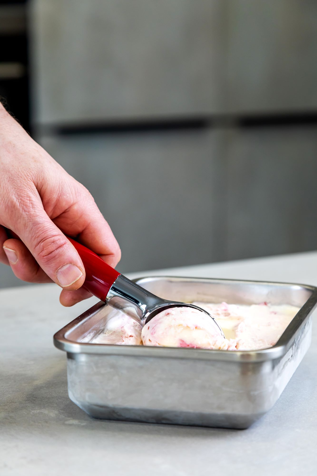 Лъжица за сладолед KitchenAid е перфектният инструмент за сервиране на замразени десерти. Краят от лята неръждаема стомана с леко остър връх улеснява порционирането на сладоледа. Ергономичната дръжка осигурява допълнителен комфорт по време на употреба.