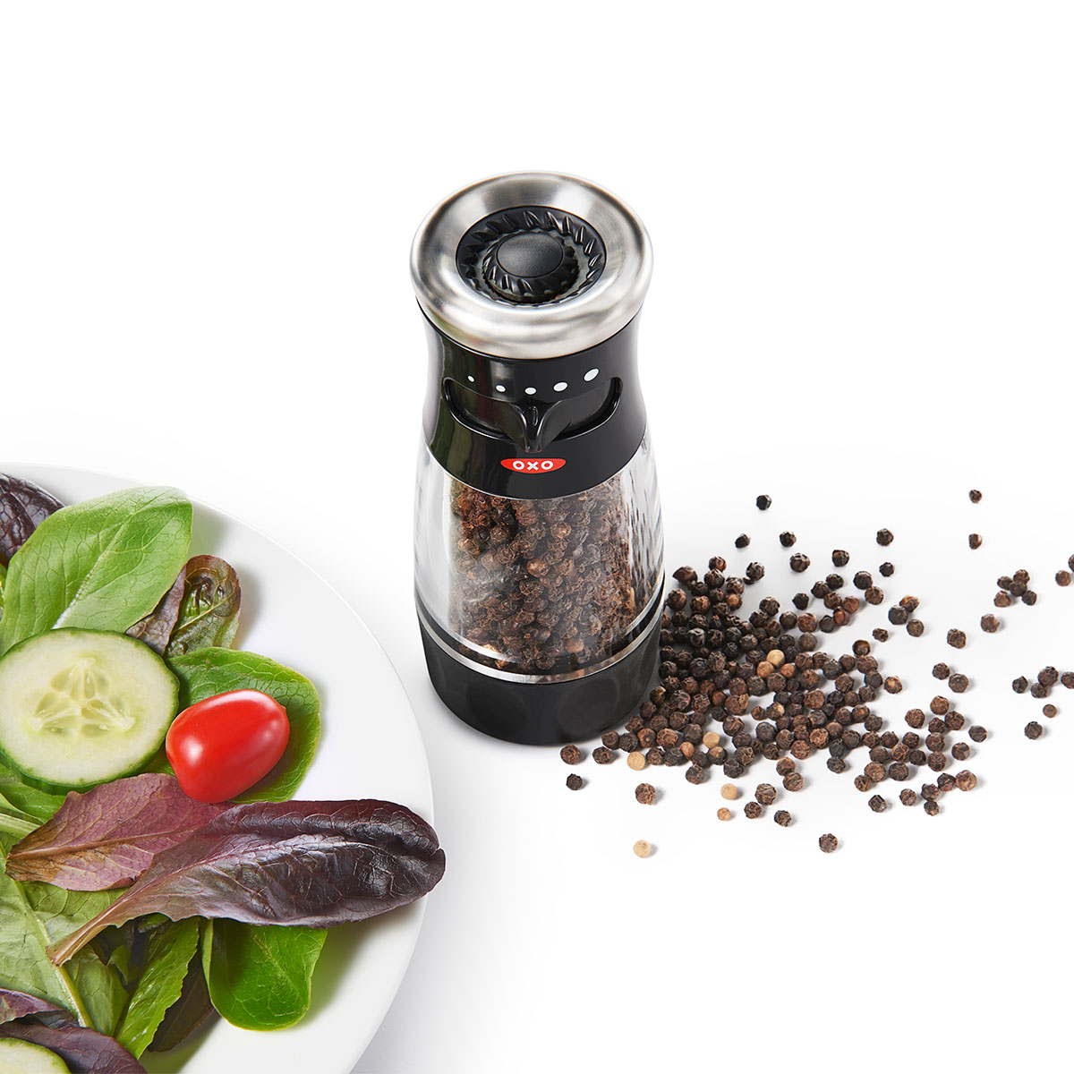 Елегантната мелница за зърна черен пипер OXO SoftWorks е идеалният аксесоар за всяка кухня или маса за хранене. Тази ръчна мелница за черен пипер разполага с акценти от неръждаема стомана и прозрачен акрилен корпус, което ви позволява лесно да видите кога е време за зареждане.
