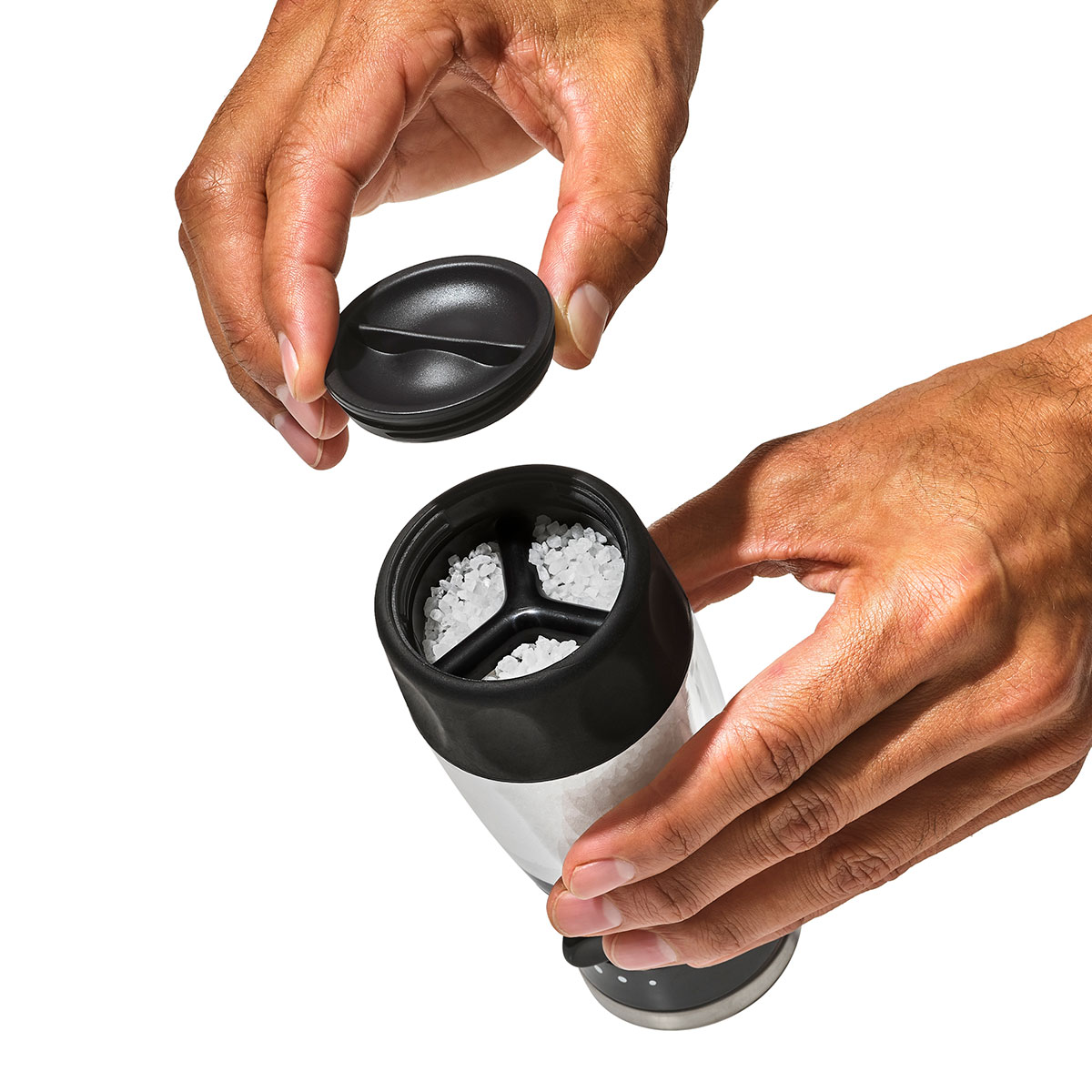 Плъзнете лоста, за да изберете от пет степени на смилане, вариращи от фино до едро. Херметически затворена капачка поддържа солта свежа и суха, а неплъзгащата се дръжка осигурява лесна и удобна употреба.