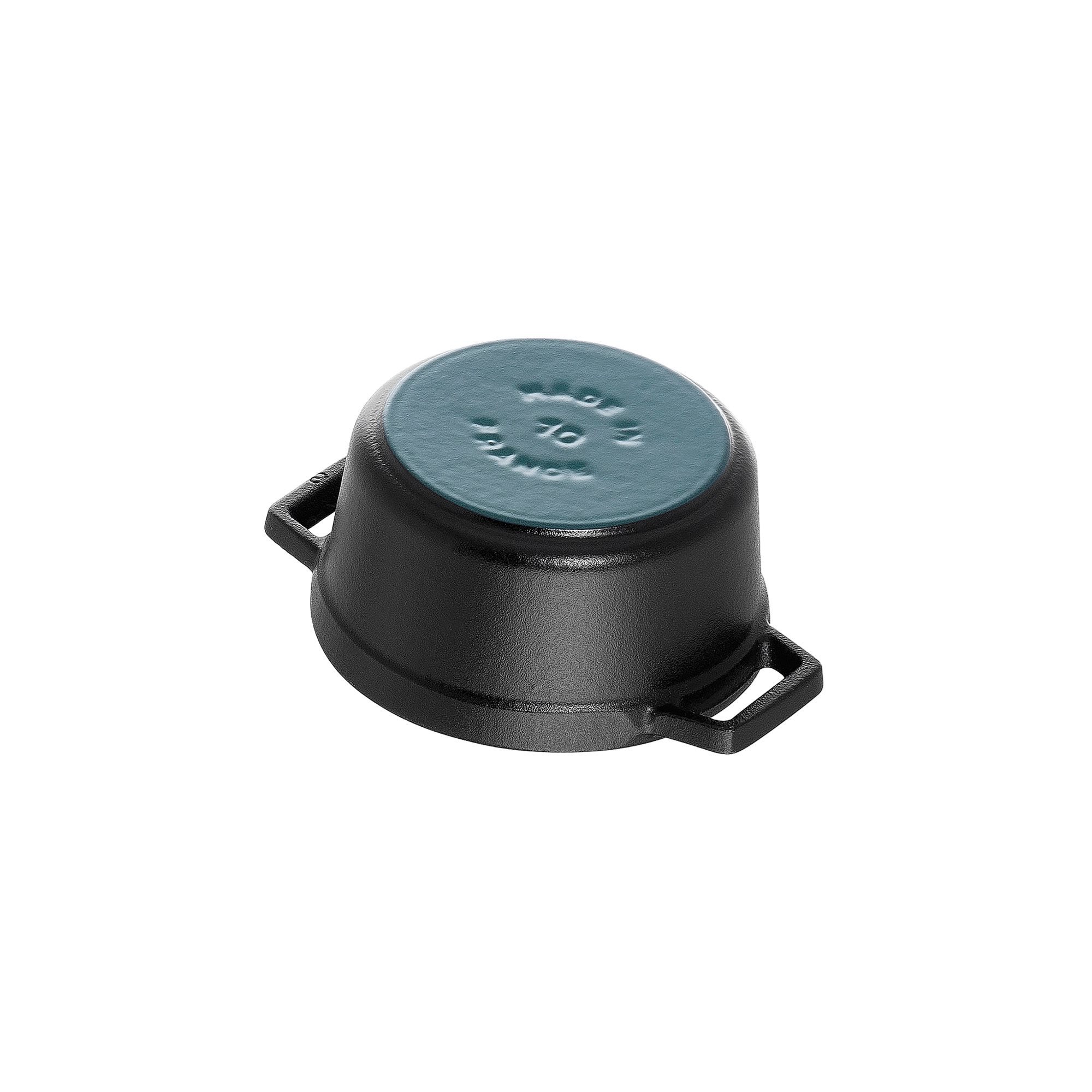 Mini-Cocotte готварски съд, марка Staub, диаметър 10 см, вместимост 0,25 л, изработена от чугун.