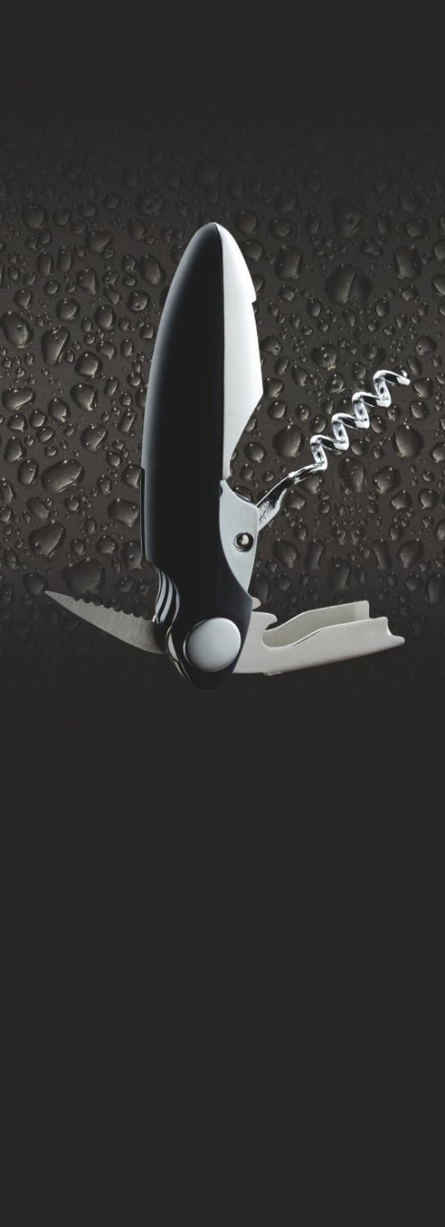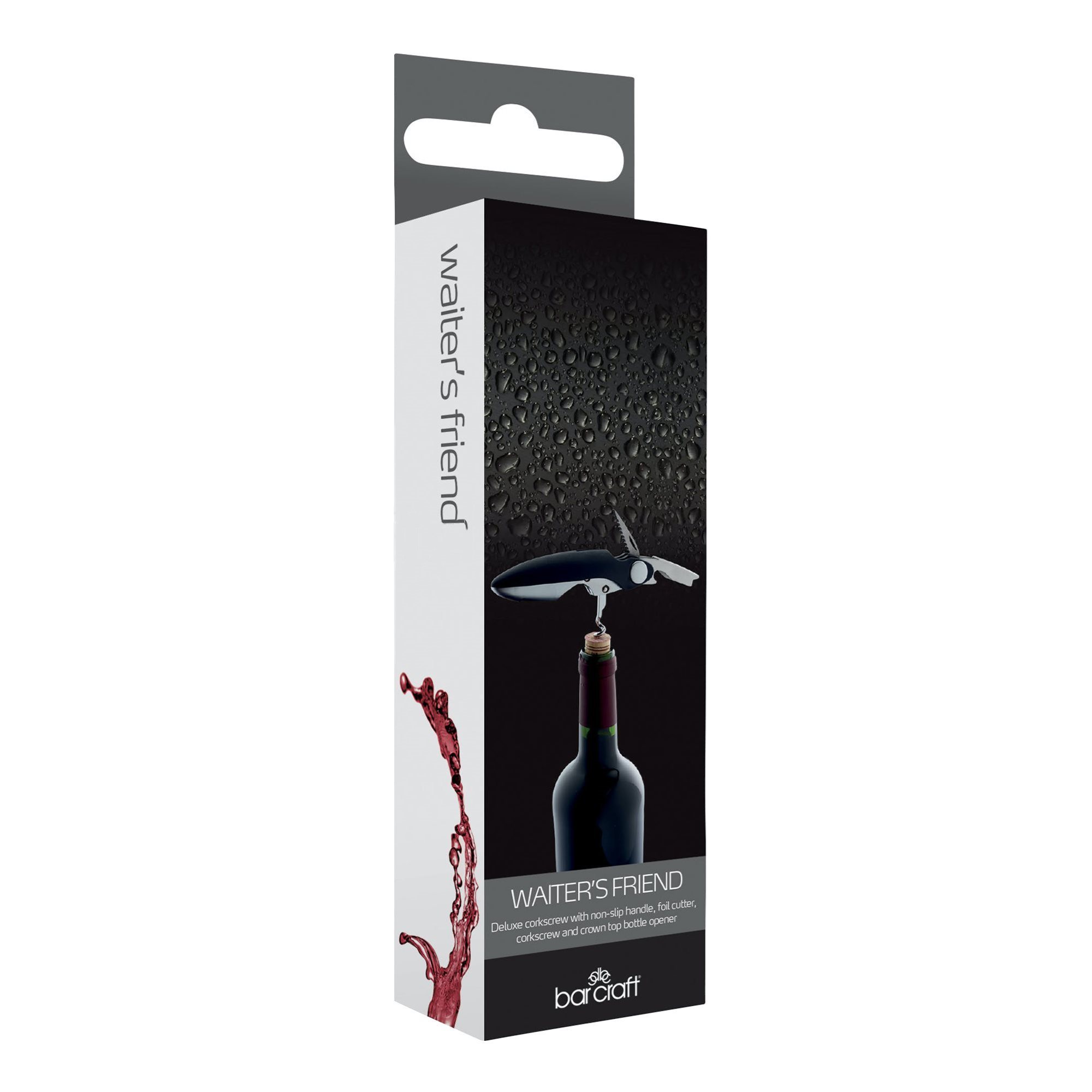 Многоцелевият тирбушон, марката BarCraft, с компактна и ергономична конструкция, включва тирбушон, отварачка за капак и фреза за фолио.