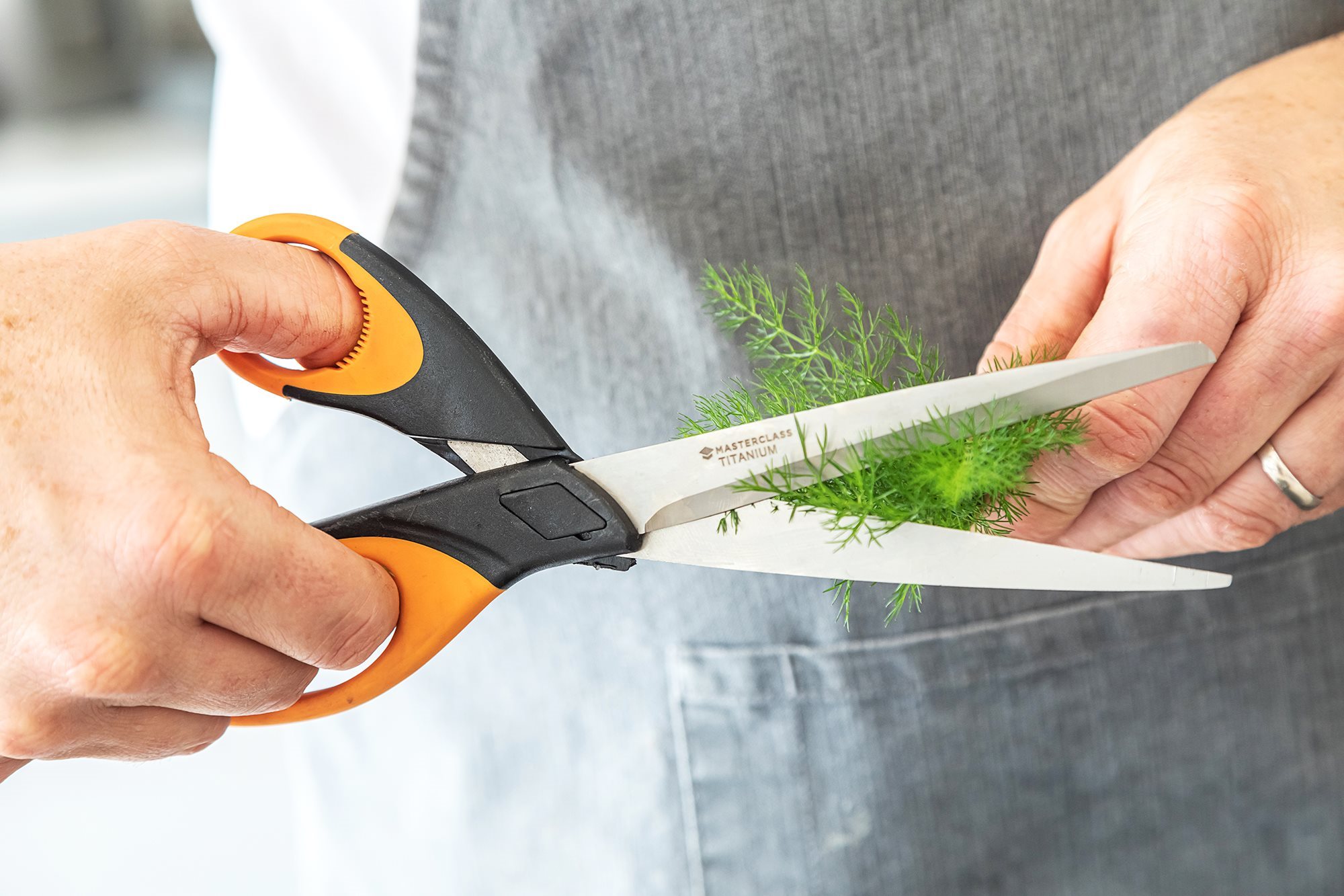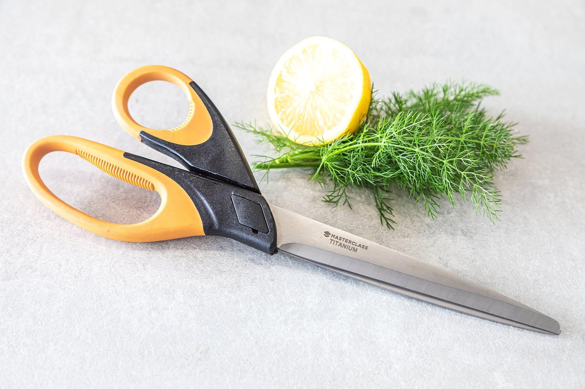 Тази многофункционална ножица MasterClass с остриета, покрити с титан от най-високо качество и снабдени с меки и прилепващи дръжки за по-голям комфорт и контрол, може да се използва за лесно, бързо и прецизно рязане, разбирайки, че такъв предмет в кухнята е необходимост, която не може да бъде заменен с нещо друго.