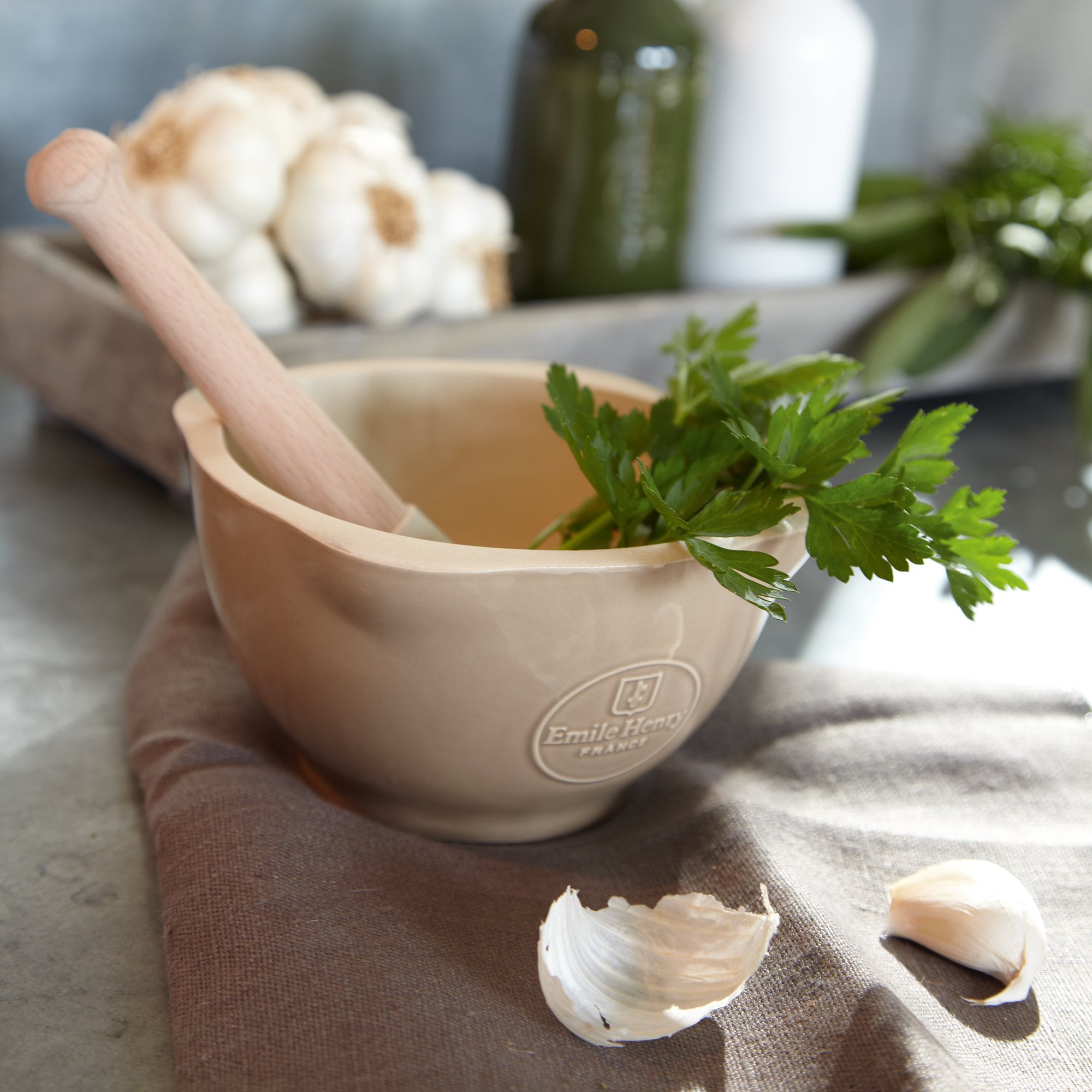 Хаван и пестик, марка Еmile Henry, 14 см в диаметър, 8 см височина, изработен от HR® керамика.