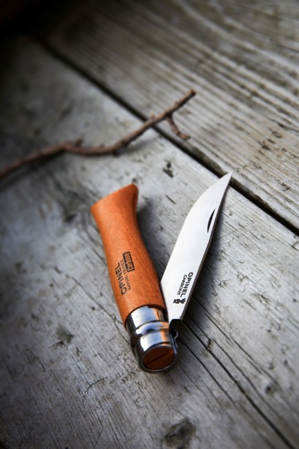 Въглеродната стомана на Opinel е изключително твърда, гарантираща отлично качество на рязане, добра устойчивост на износване и лесно заточване. Острието от въглеродна стомана е много податливо на корозия. Острието трябва да се изсушава след всяка употреба и да се смазва редовно.
