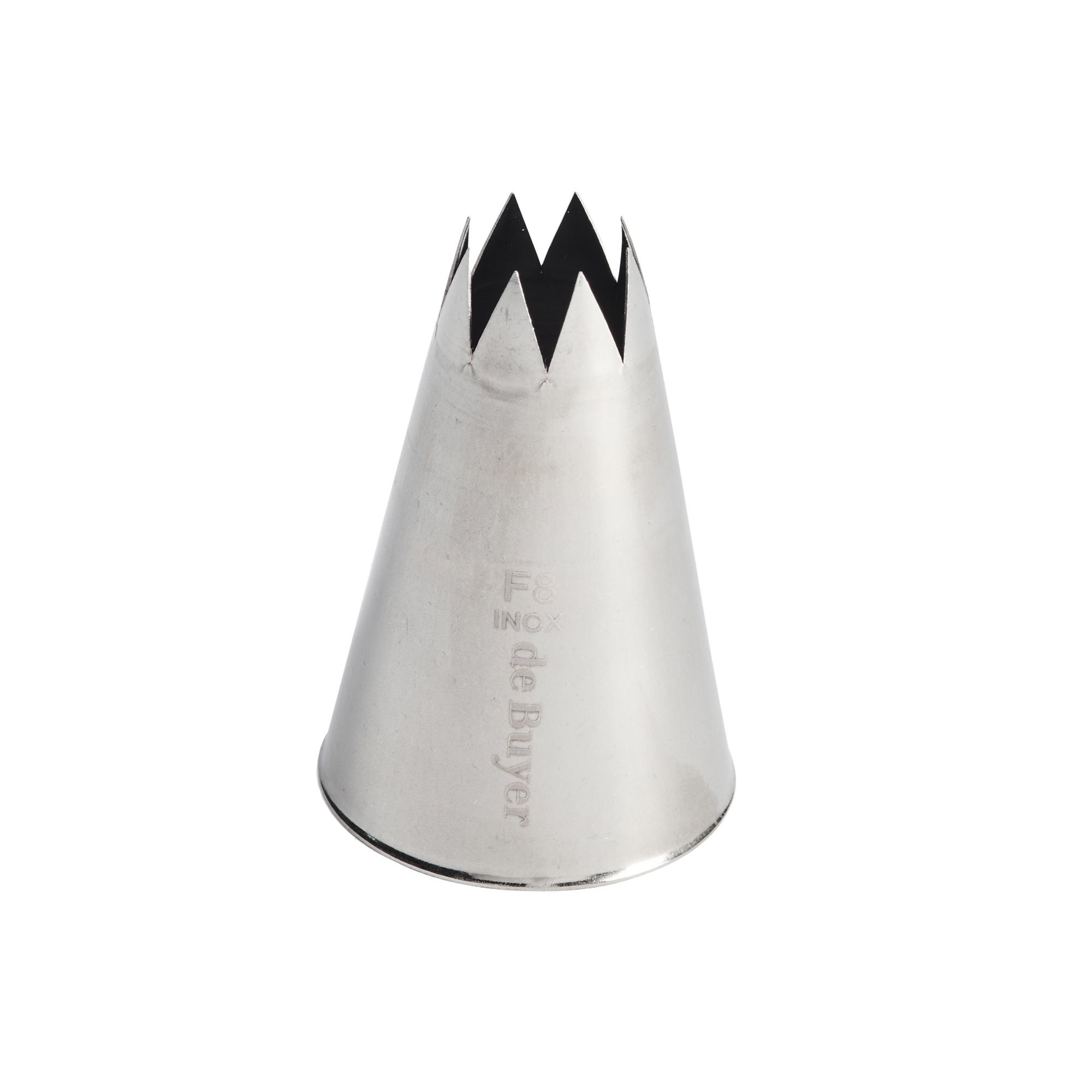 Накрайник за декориране във формата на звезда F8, с 8 канала, марка de Buyer. Продукт подходящ за украса на торти или мъфини.