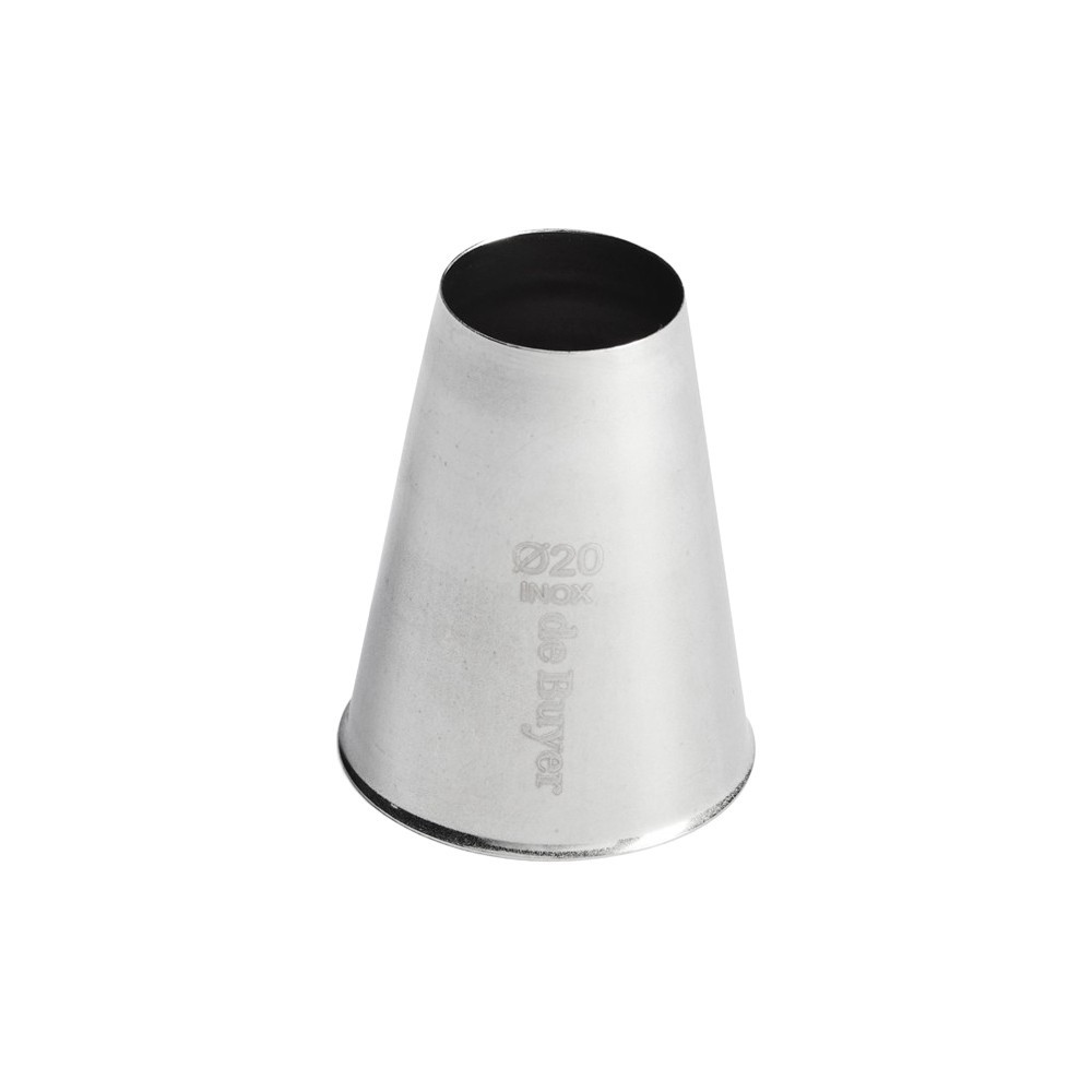 Обикновен накрайник за сладкиши, с прав ръб, изработен от неръждаема стомана, горен диаметър 20 мм, марка de Buyer.