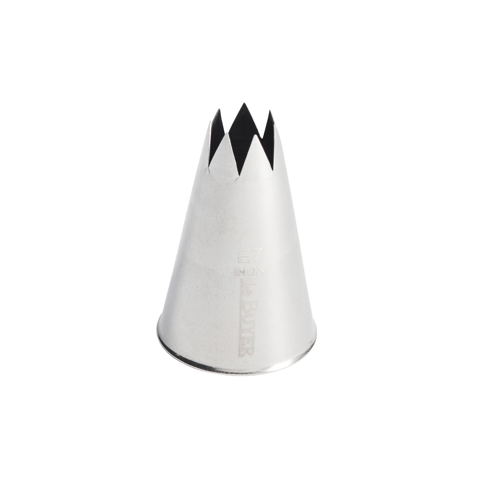 Накрайник за сладкиши E7, със 7 зъба, звездовиден, марка de Buyer. Перфектен накрайник, който да използвате, когато декорирате торти, сладкиши, блатове или мъфини.