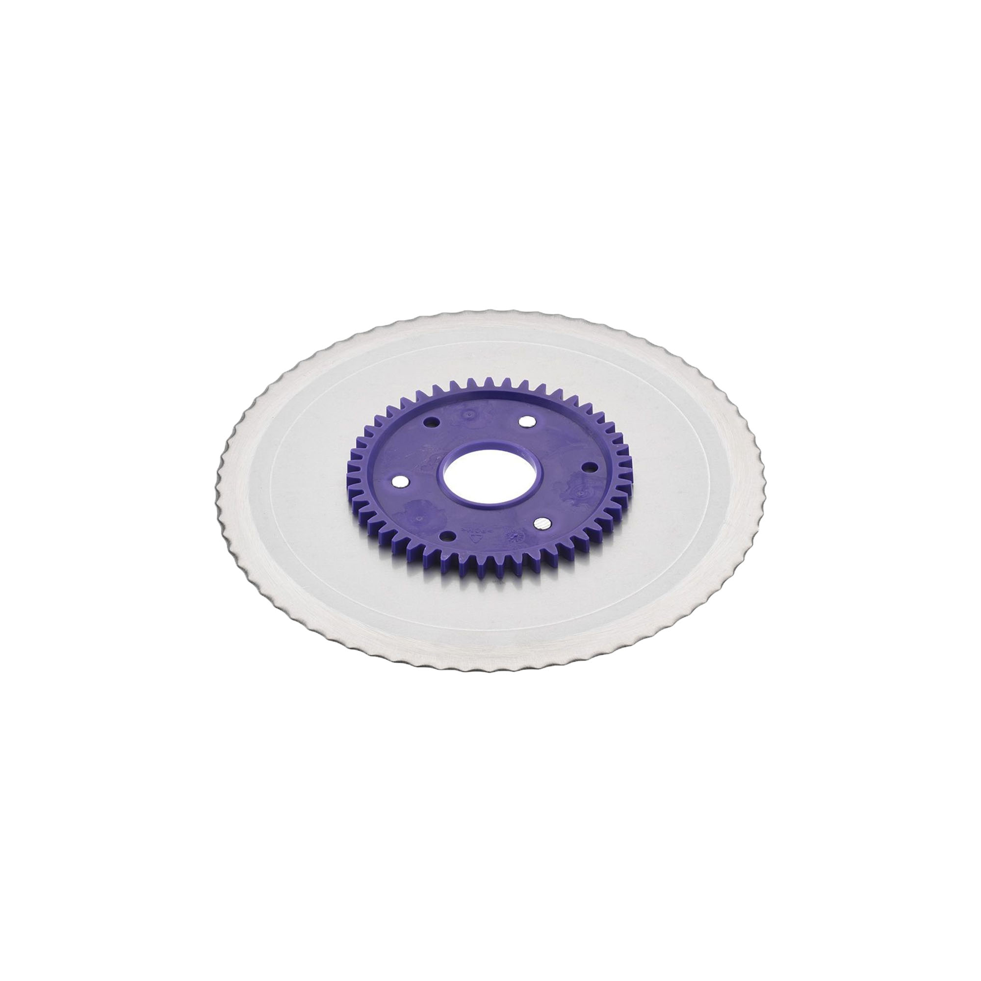 Назъбено кръгло острие с виолетови зъбни колела, произведено от Ritter, с диаметър 17 см, изработено от неръждаема стомана, подходящо за домакински електрически резачки Ritter.