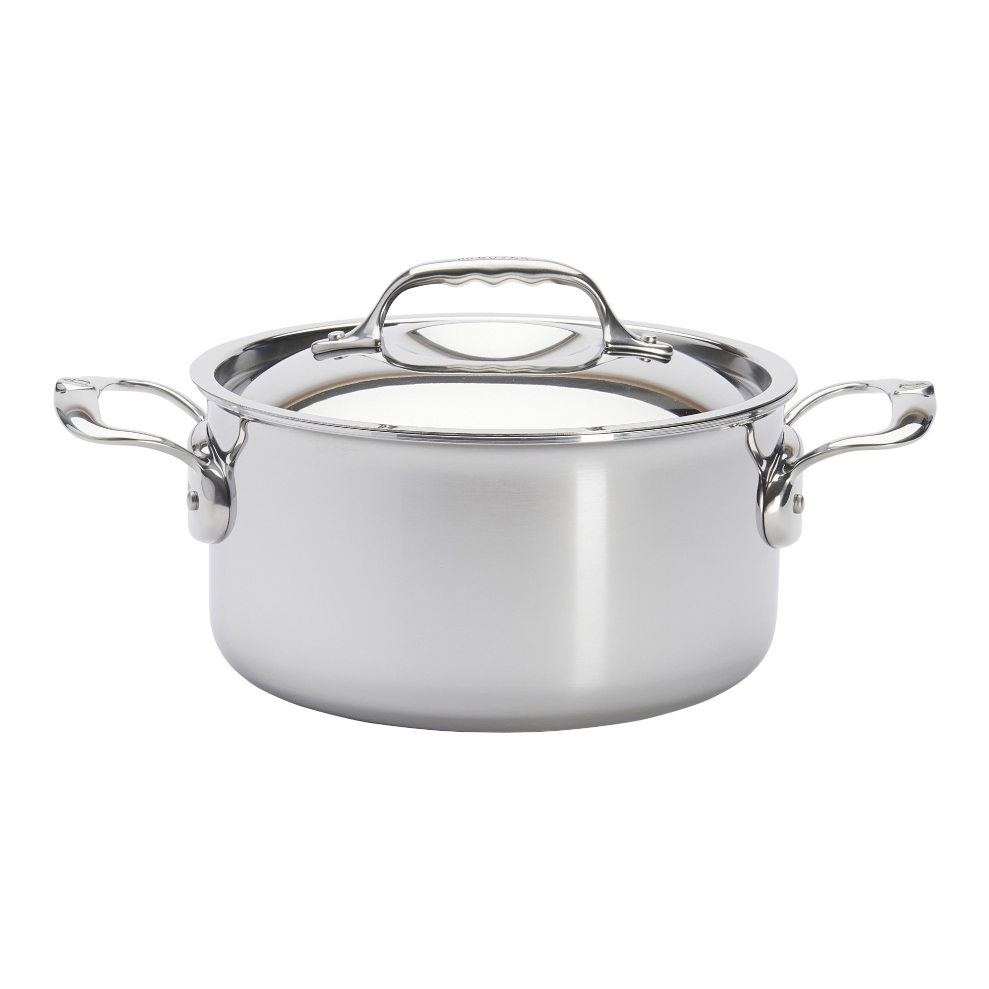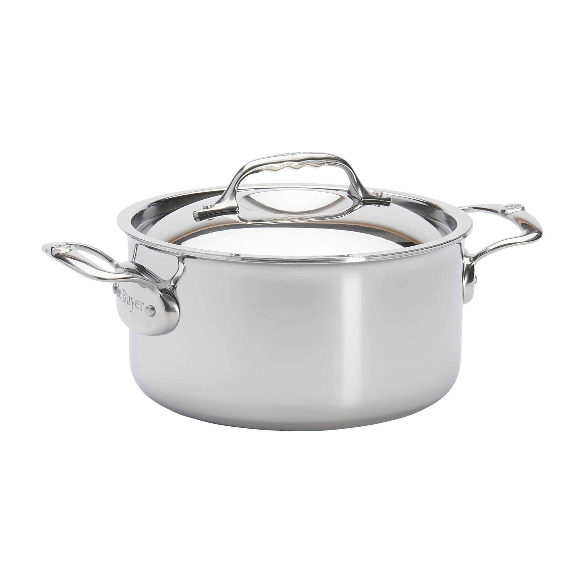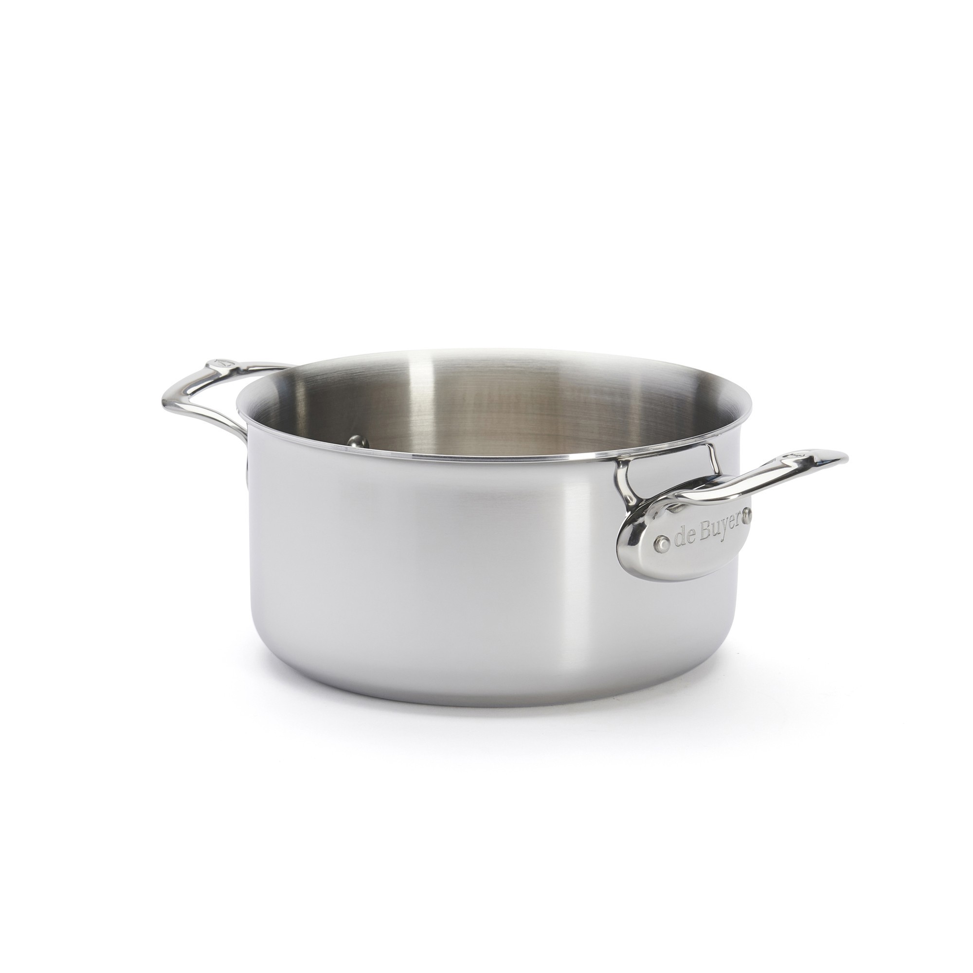 Тенджера с капак, de Buyer марка, диаметър 20 см, височина 11 см, капацитет 3,4 л, изработена от неръждаема стомана, дебелина 2,3 мм. Тенджерата е идеална за бавно готвене на храна или за вряща вода и зеленчуци.