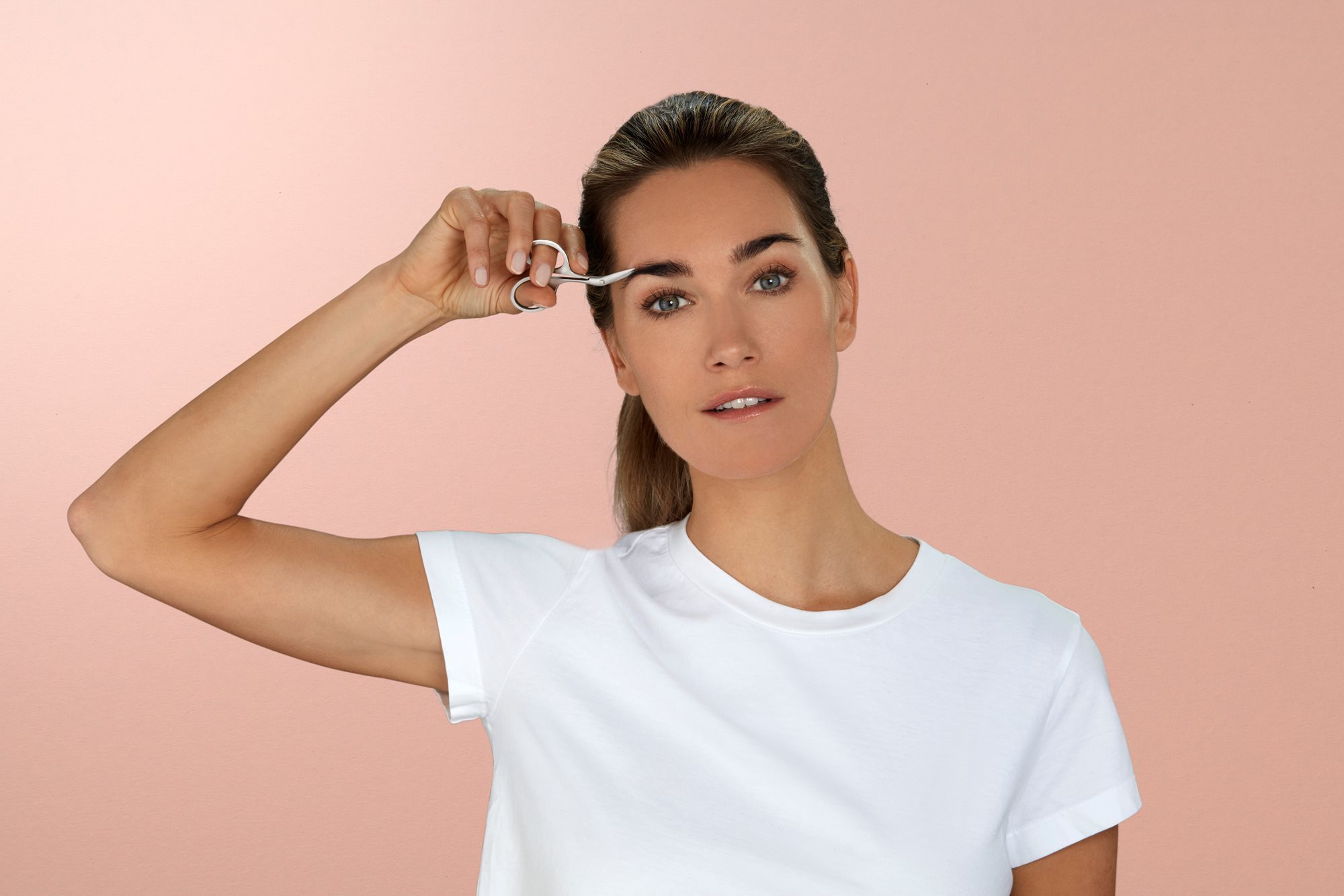 Ножицата за вежди е специално разработена за подрязване и оформяне на вежди. Дизайнът на ъгловата ножица и удълженият пръстен осигуряват оптимална и безопасна употреба близо до очите, докато ултратънките остриета гарантират максимална прецизност при моделиране и използване.