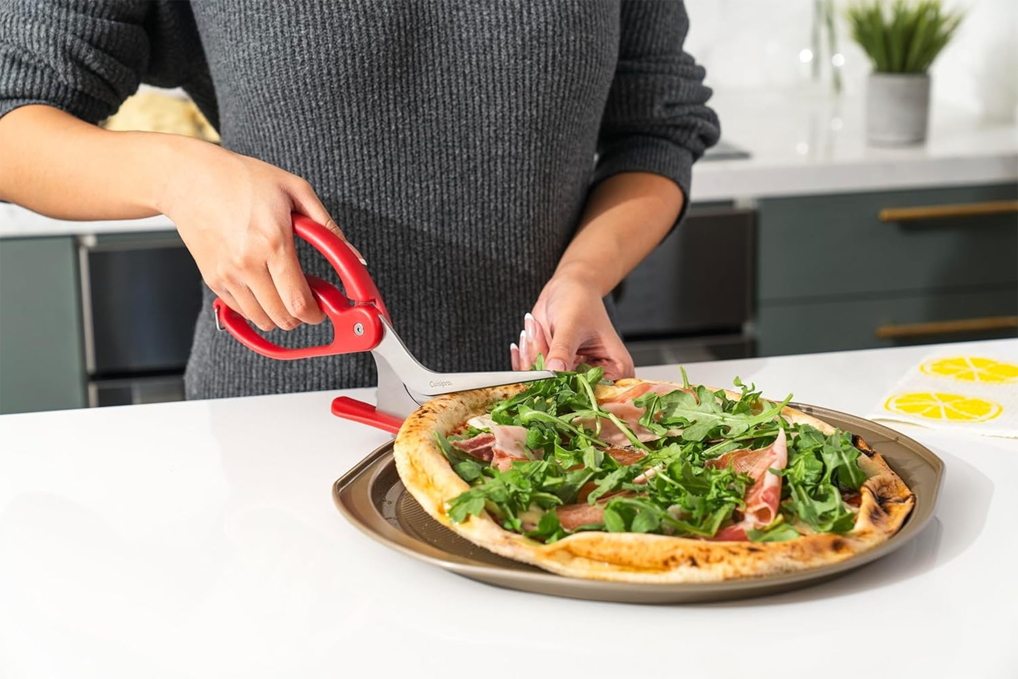Нарежете перфектното парче пица, всеки път, с ножиците за пица Cuisipro , с дизайн 2 в 1, марка Grunwerg