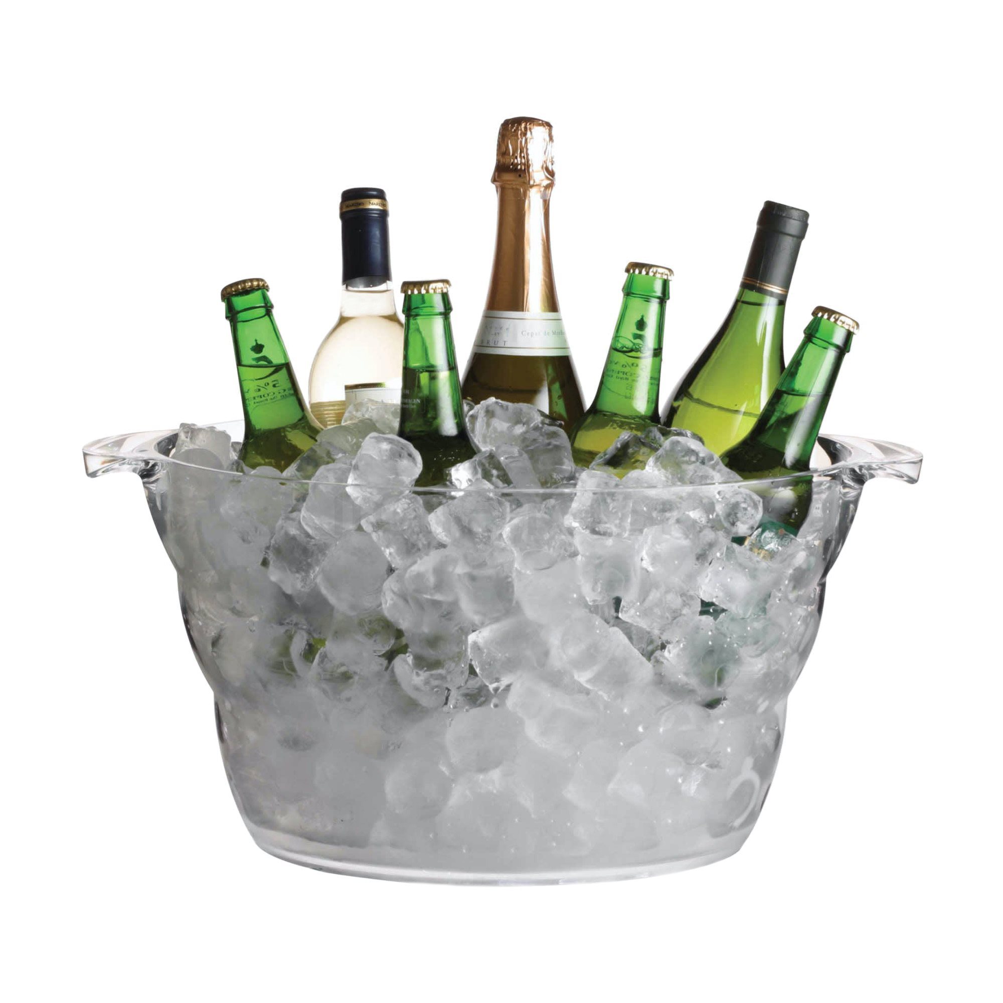 Охладител за бутилки, произведен от BarCraft, който е направен от прозрачен акрилен материал. Охладителят за бутилки е снабден и с две странични дръжки.