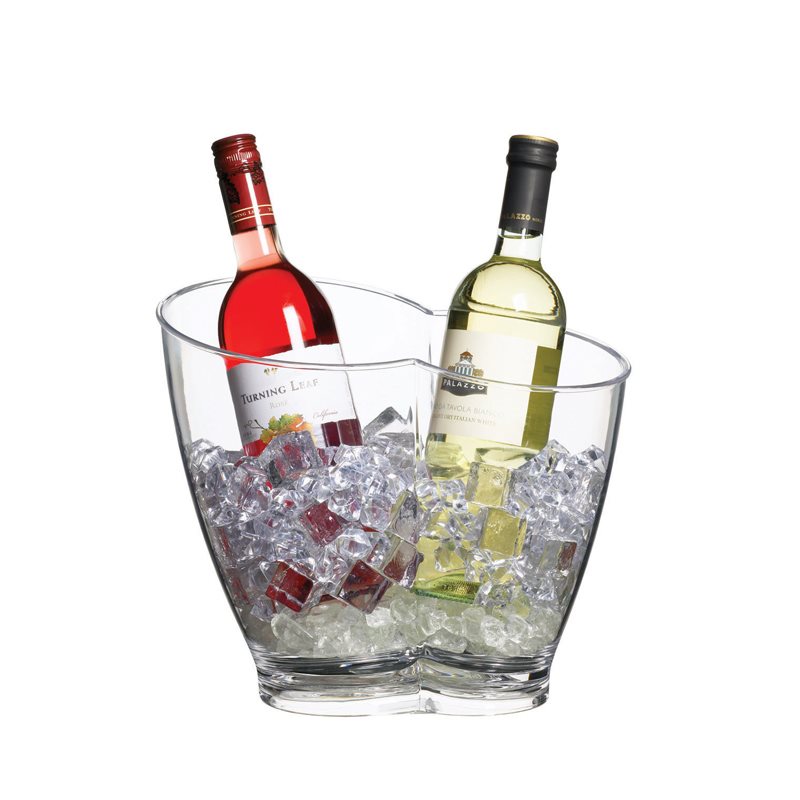 Охладител за бутилки, произведен от BarCraft, размери 30 х 26 х 21 см, от акрилен материал с елегантен дизайн и капацитет за охлаждане на 2 бутилки вино.