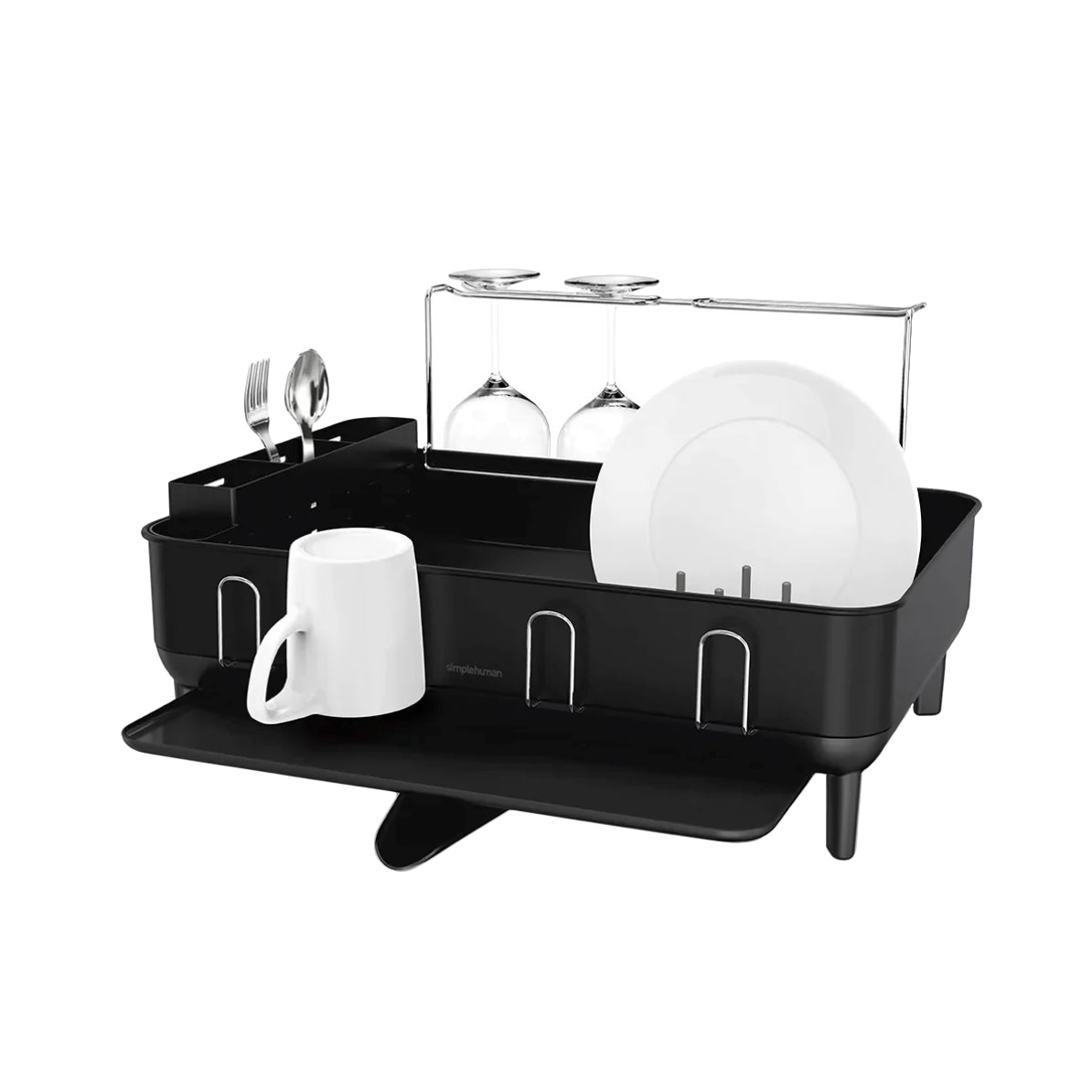 Отцедник за съдове, произведен от simplehuman, размер 56,6 х 51,4 х 29,2 см, изработен от неръждаема стомана.