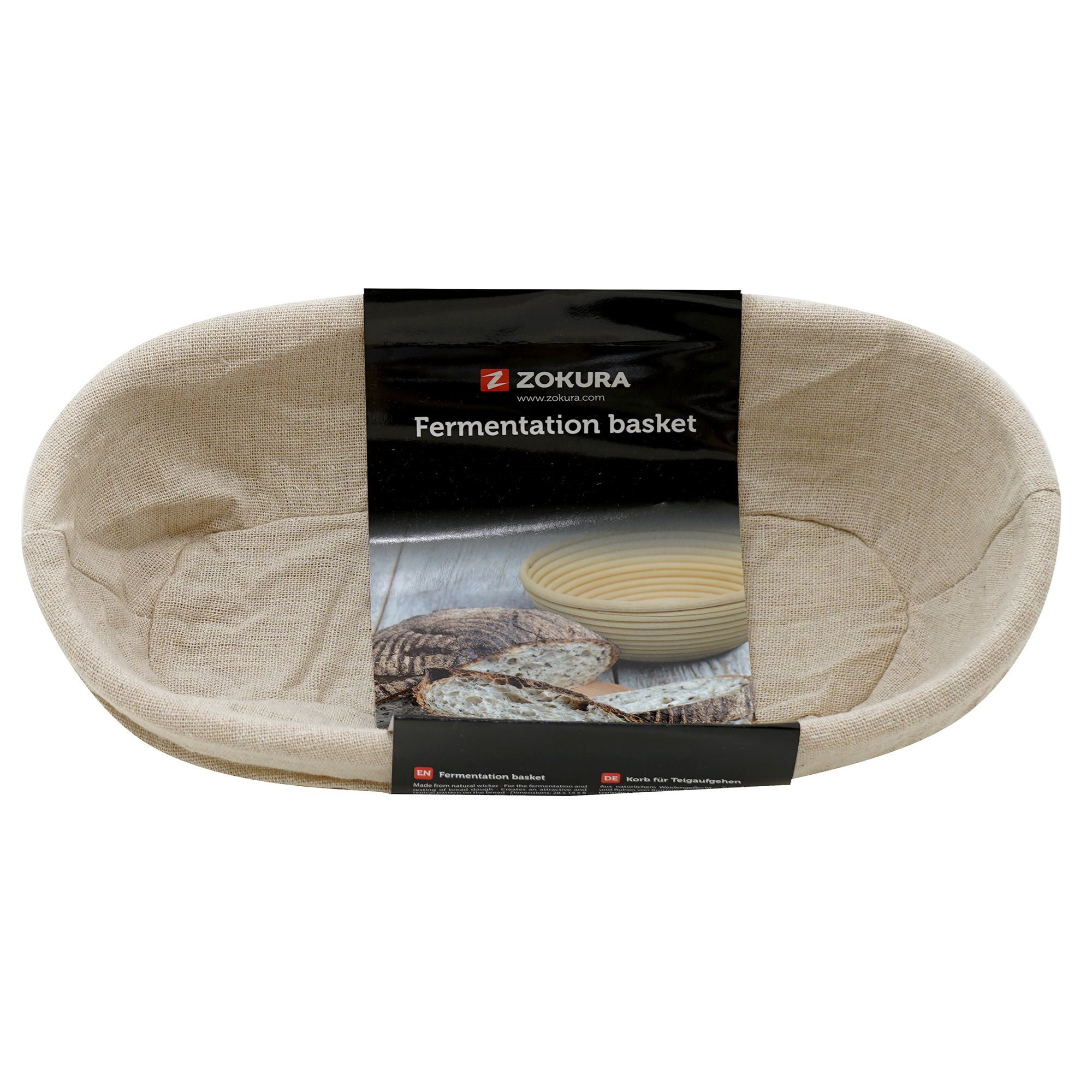 Овална кошница за втасване на тесто, размери 28 x 15 x 8 см, изработена от ратан, марка Zokura