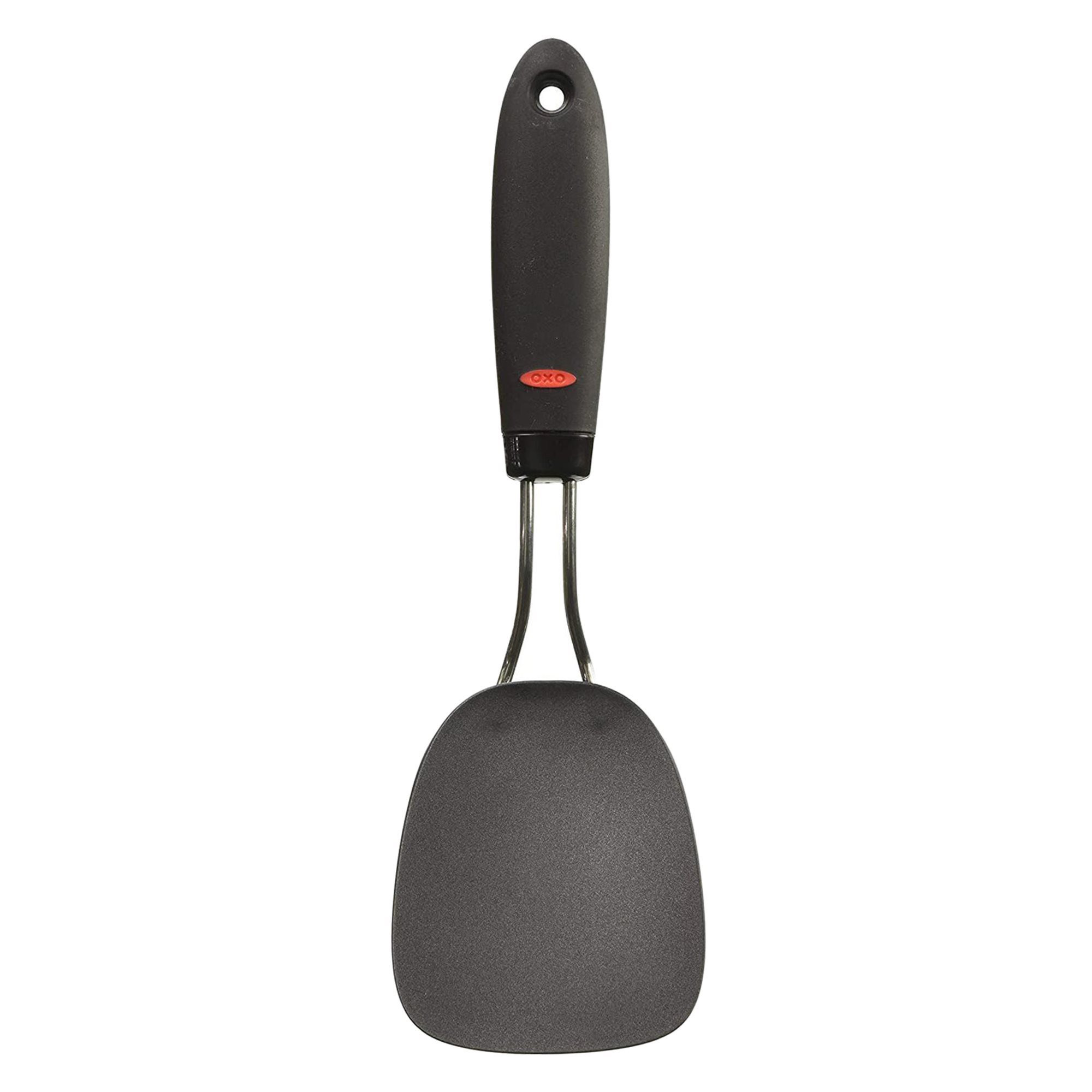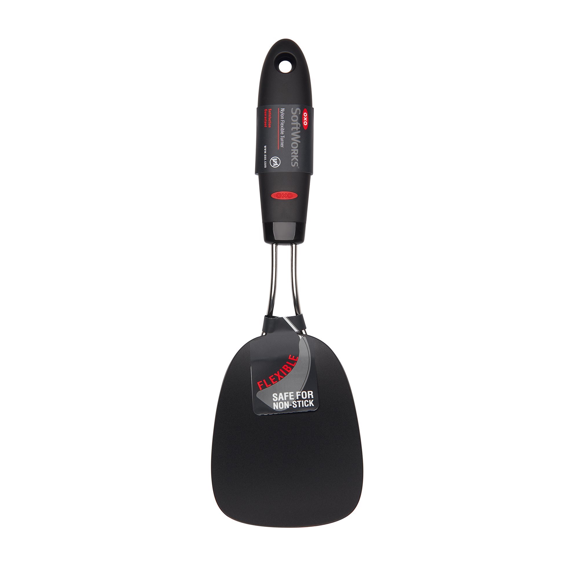 Подгответе всичките си любими ястия лесно с помощта на тази шпатула за готвене OXO. Осигурена с метална рамка, с найлонова дръжка, която дава възможност за добро захващане и функционален найлонов край, тази черна цветна шпатула е универсален прибори във вашата кухня.