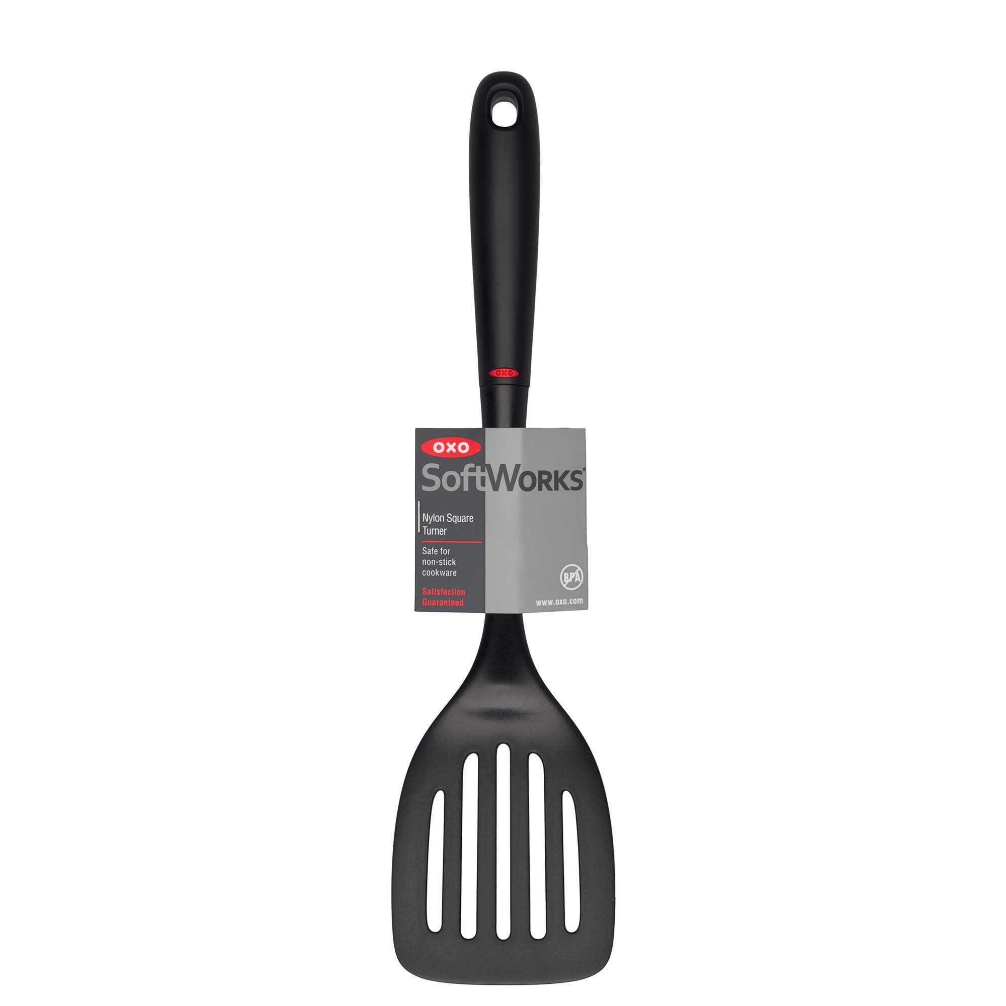 OXO марка найлонови продукти се възползват от високо качество, като са снабдени с големи краища и удобни дръжки. Краищата издържат на високи температури и са подходящи за готварски съдове с незалепваща повърхност.