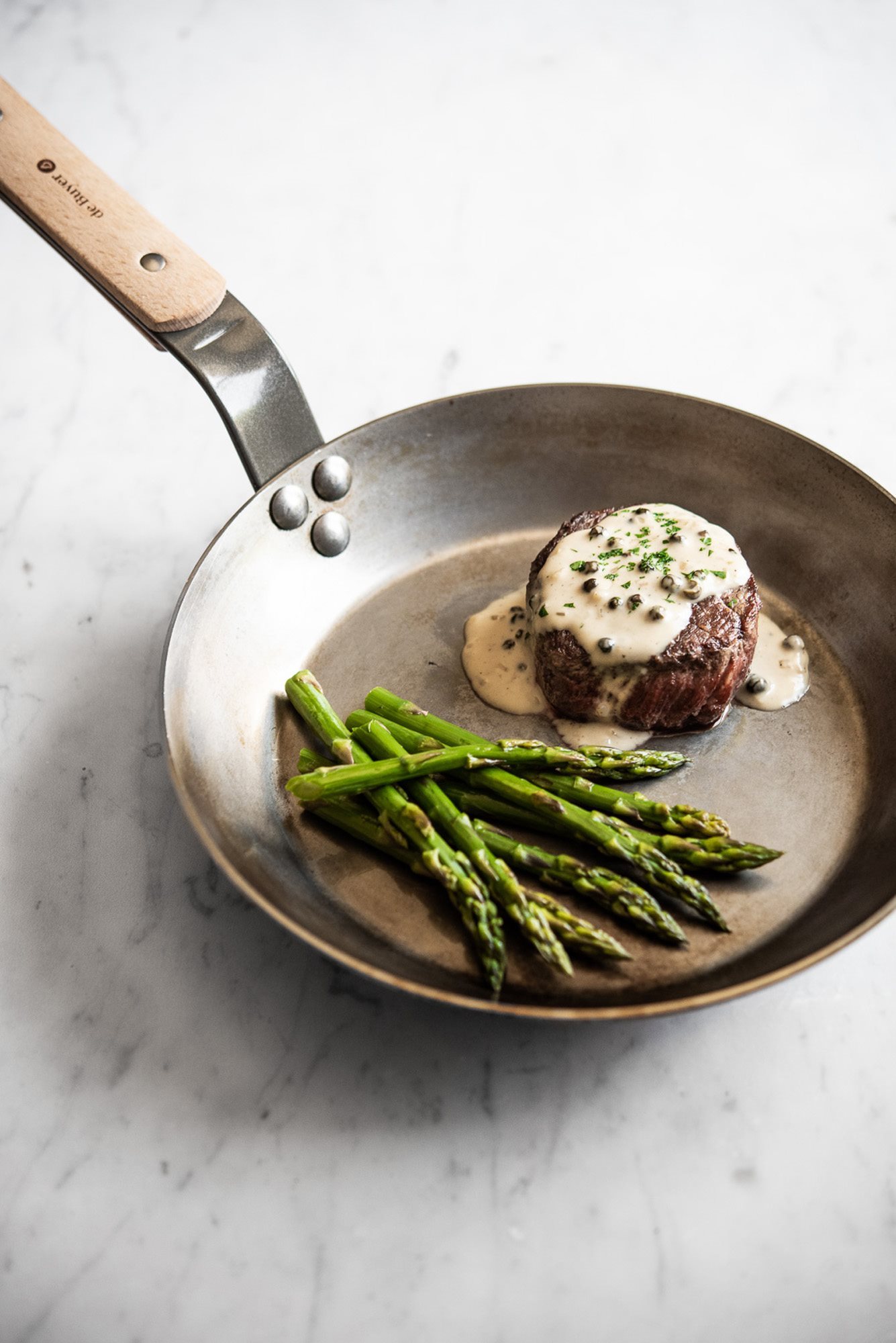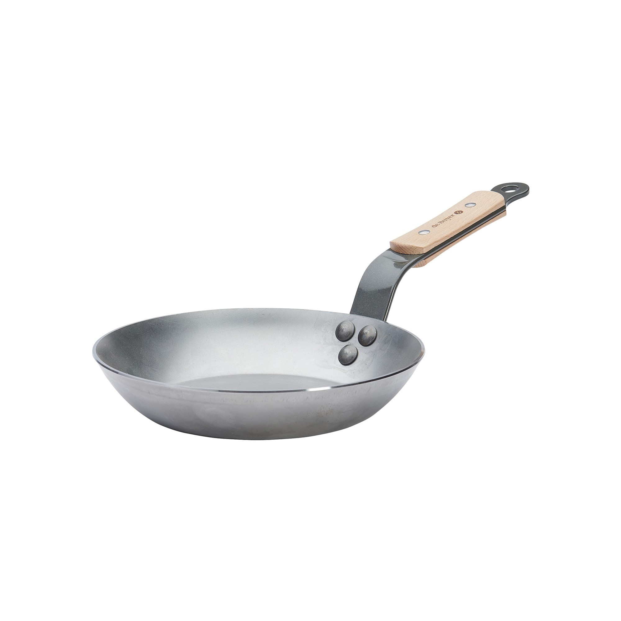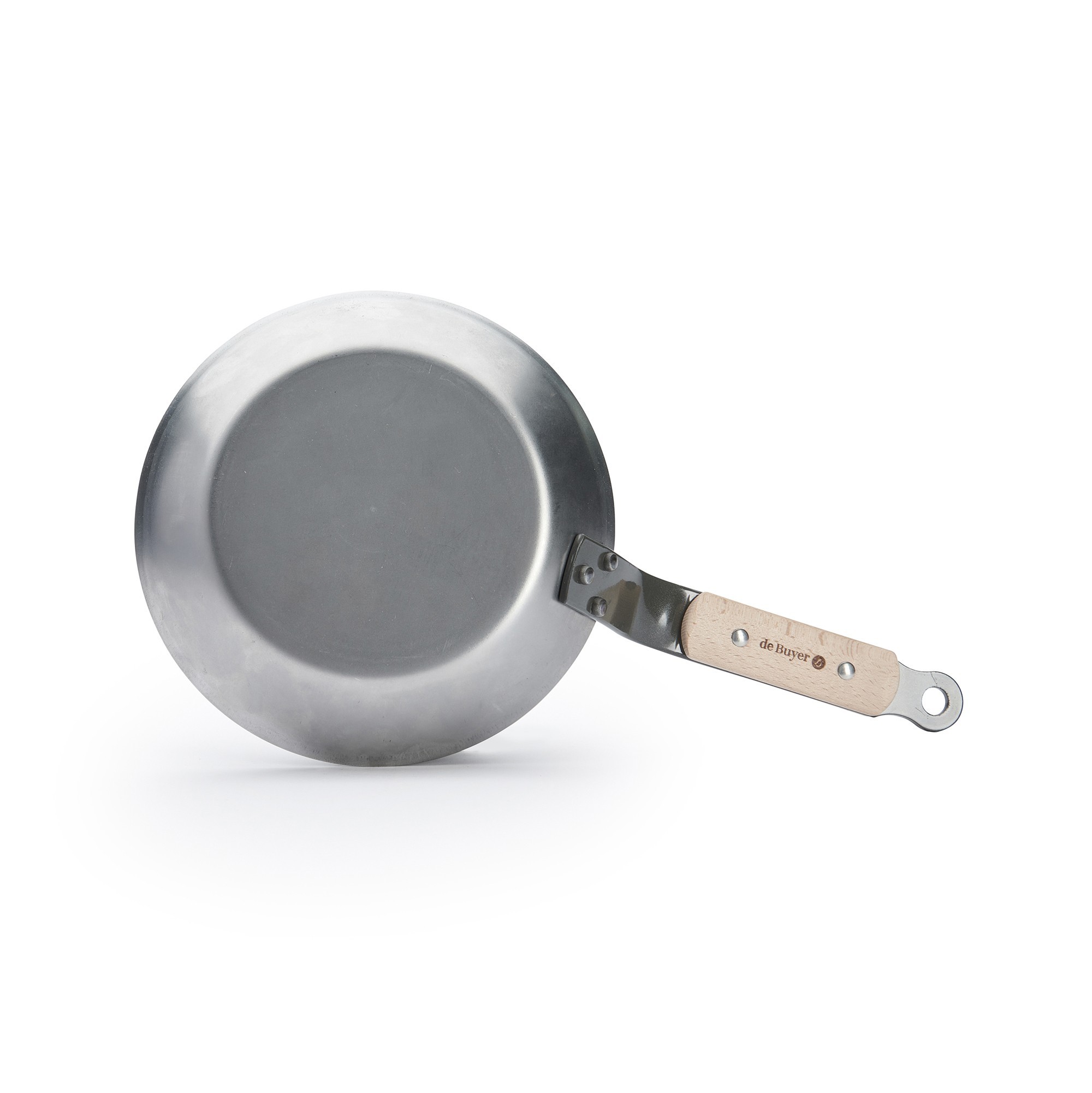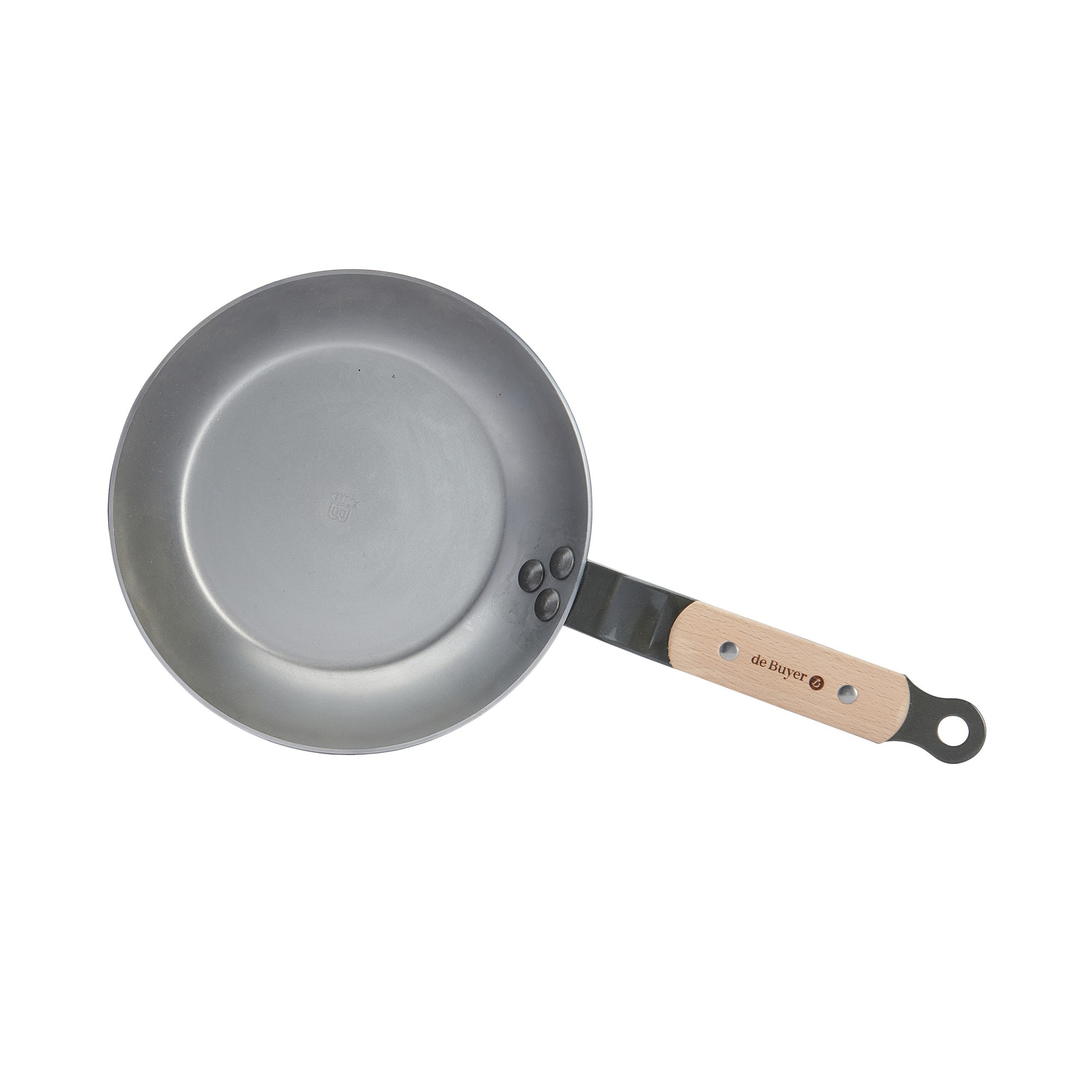 Професионален тиган, марка de Buyer, диаметър 20 см, височина 3,2 см, изработен от стомана с дебелина 2,5 мм, която не се деформира. Завършекът му е направен с натурален пчелен восък, който предпазва тигана от окисляване и улеснява третирането му чрез смазване и загряване с масло преди употреба (вижте как става смазването и загряването с масло във видеото по-долу).