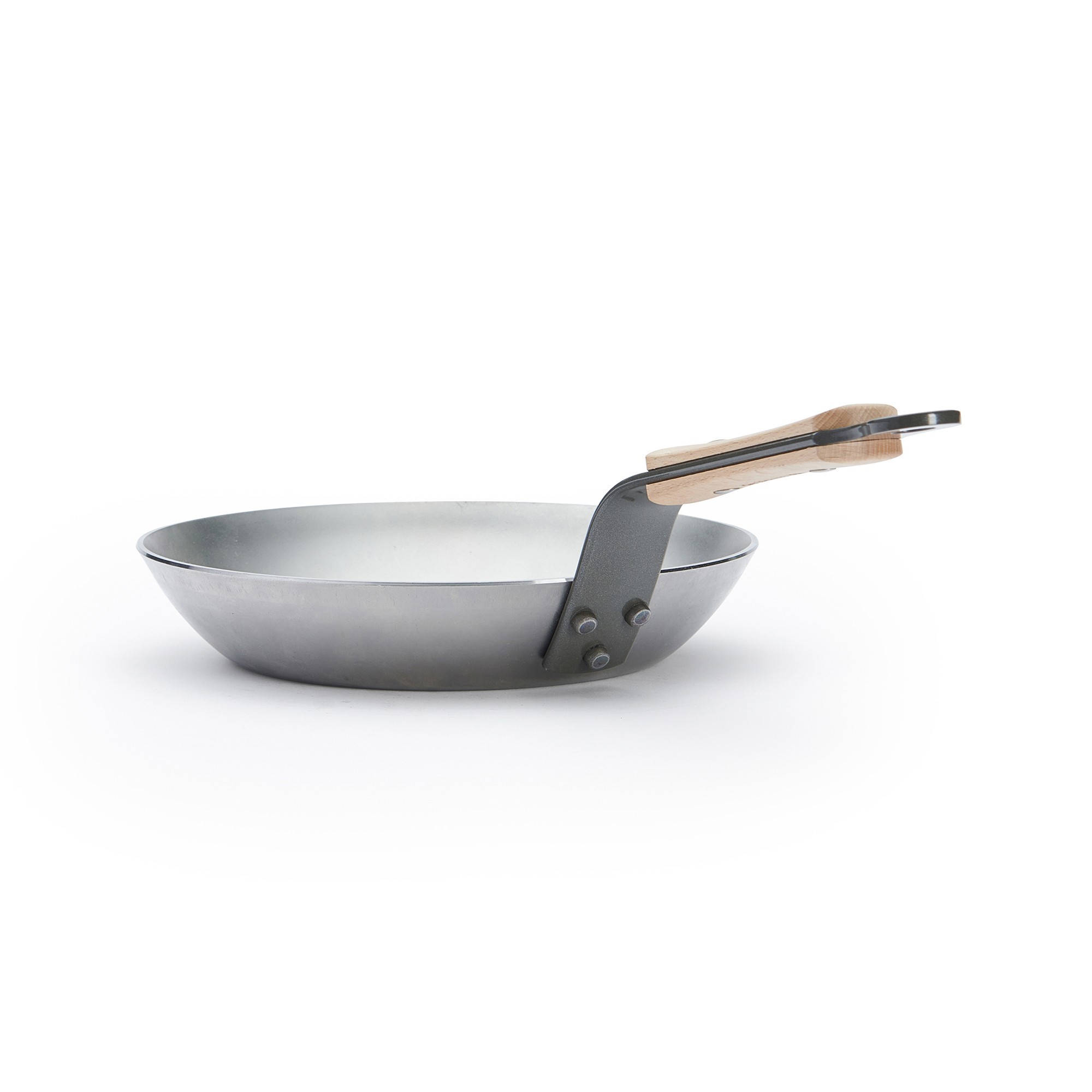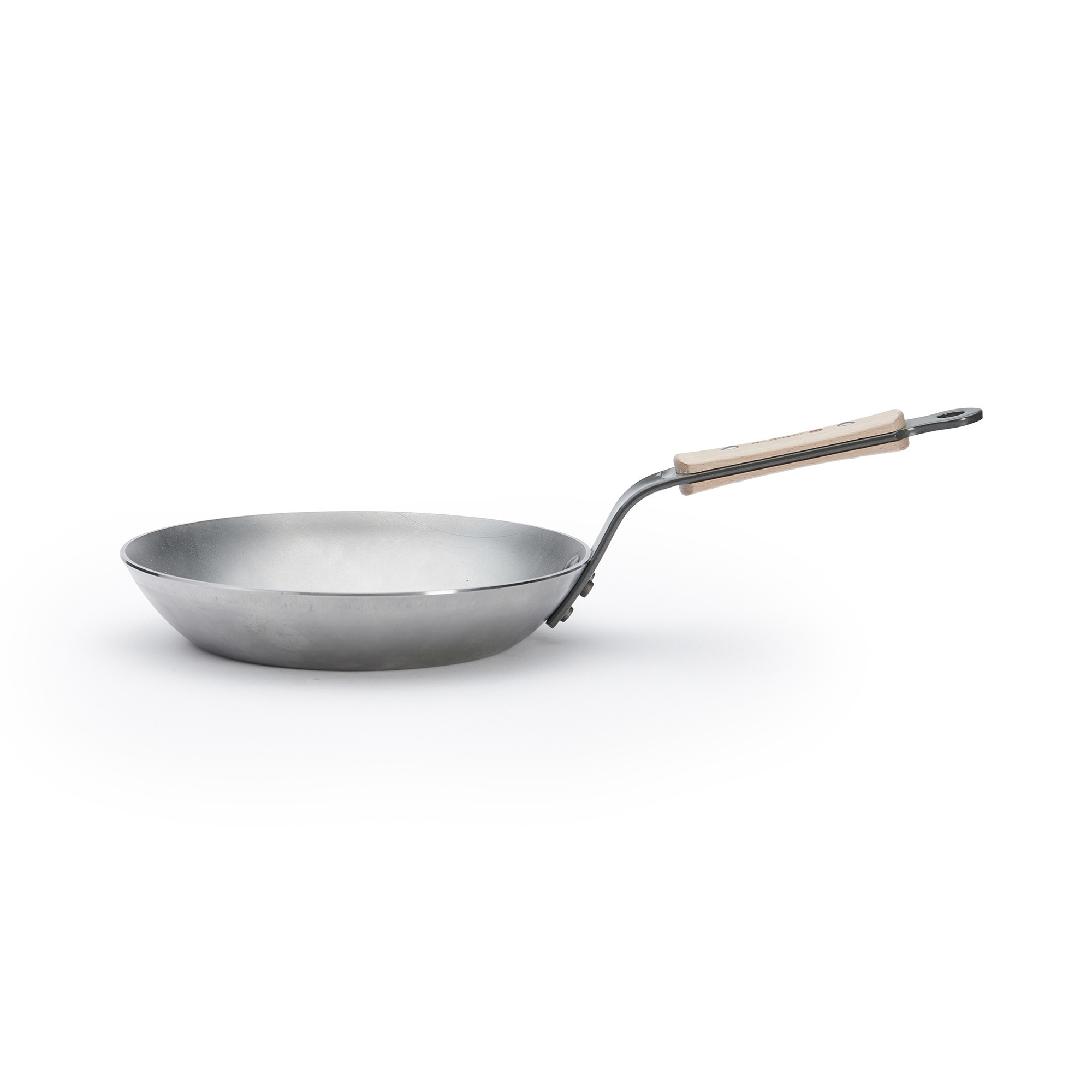 Високоустойчивата дръжка във френски стил е изработена от стомана и закрепена с много здрави нитове. Дръжката е естетически подобрена с букова дървесина и завършена с пчелен восък. Дървената дръжка подобрява захвата и ви предпазва от топлина.