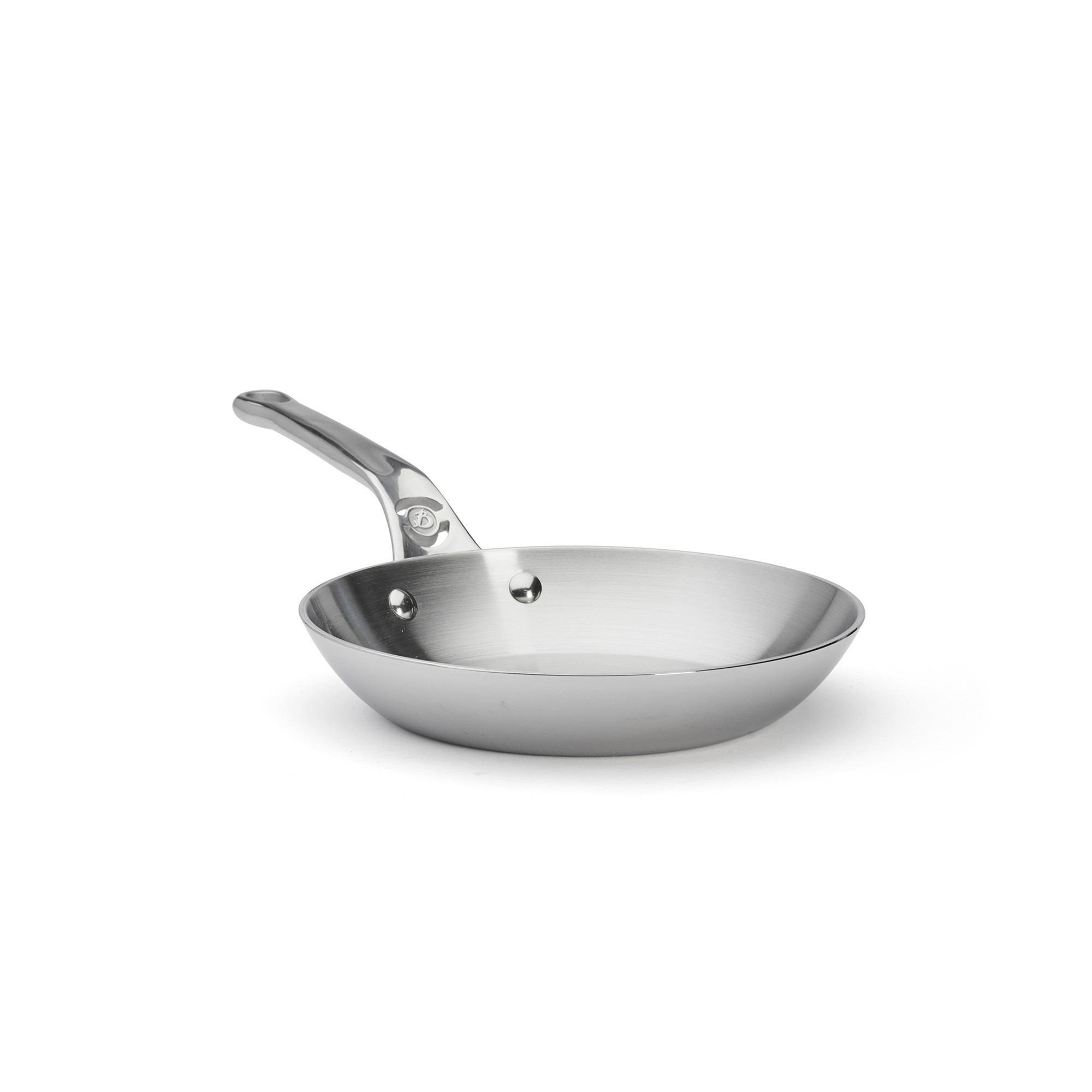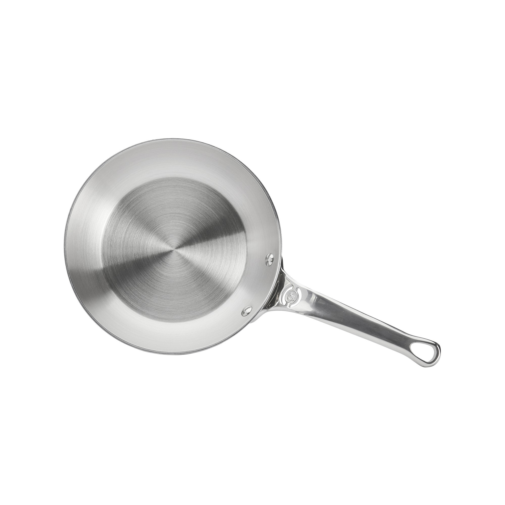 Тиган, марка de Buyer , диаметър 20 см, височина 4 см, изработена от неръждаема стомана, дебелина 2,3 мм. Тиганът е идеален за пържене на храни, за карамелизиране или за правене на пламък.
