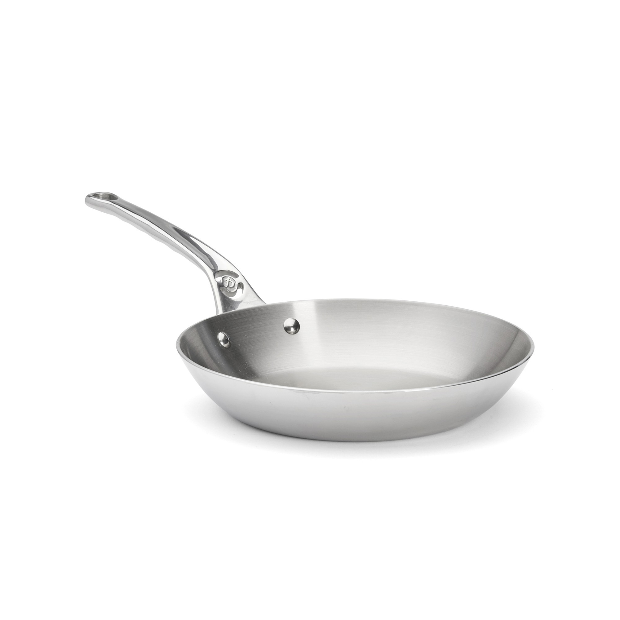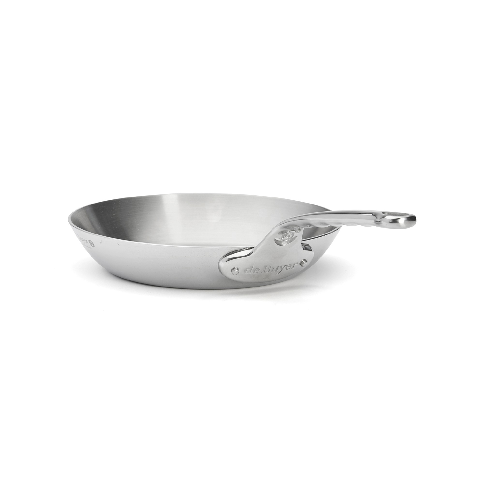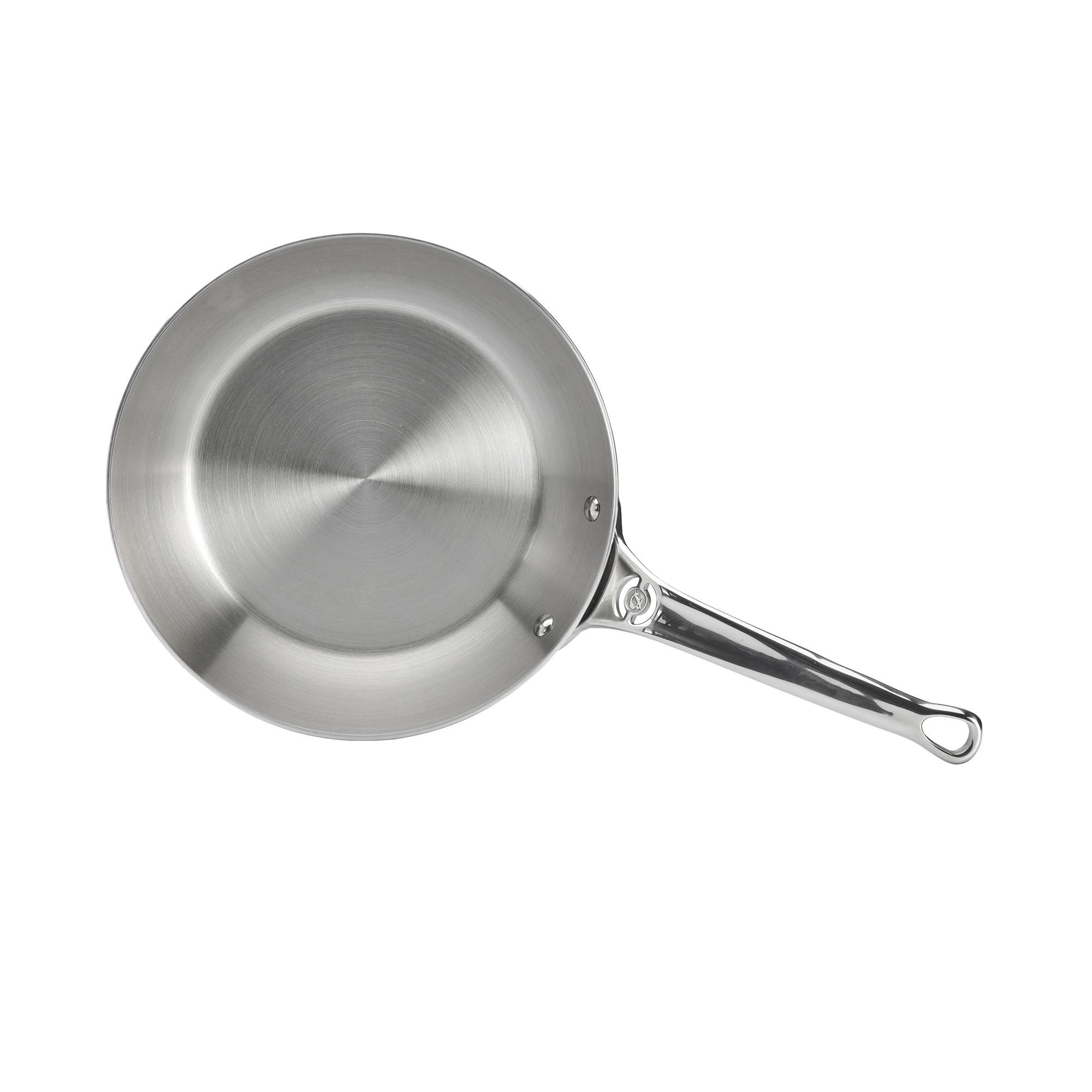Тиган, марка de Buyer, диаметър 24 см, височина 4 см, изработена от неръждаема стомана с дебелина 2,8 мм. Тиганът е идеален за пържене на храни, за карамелизиране или за правене на фламбе.