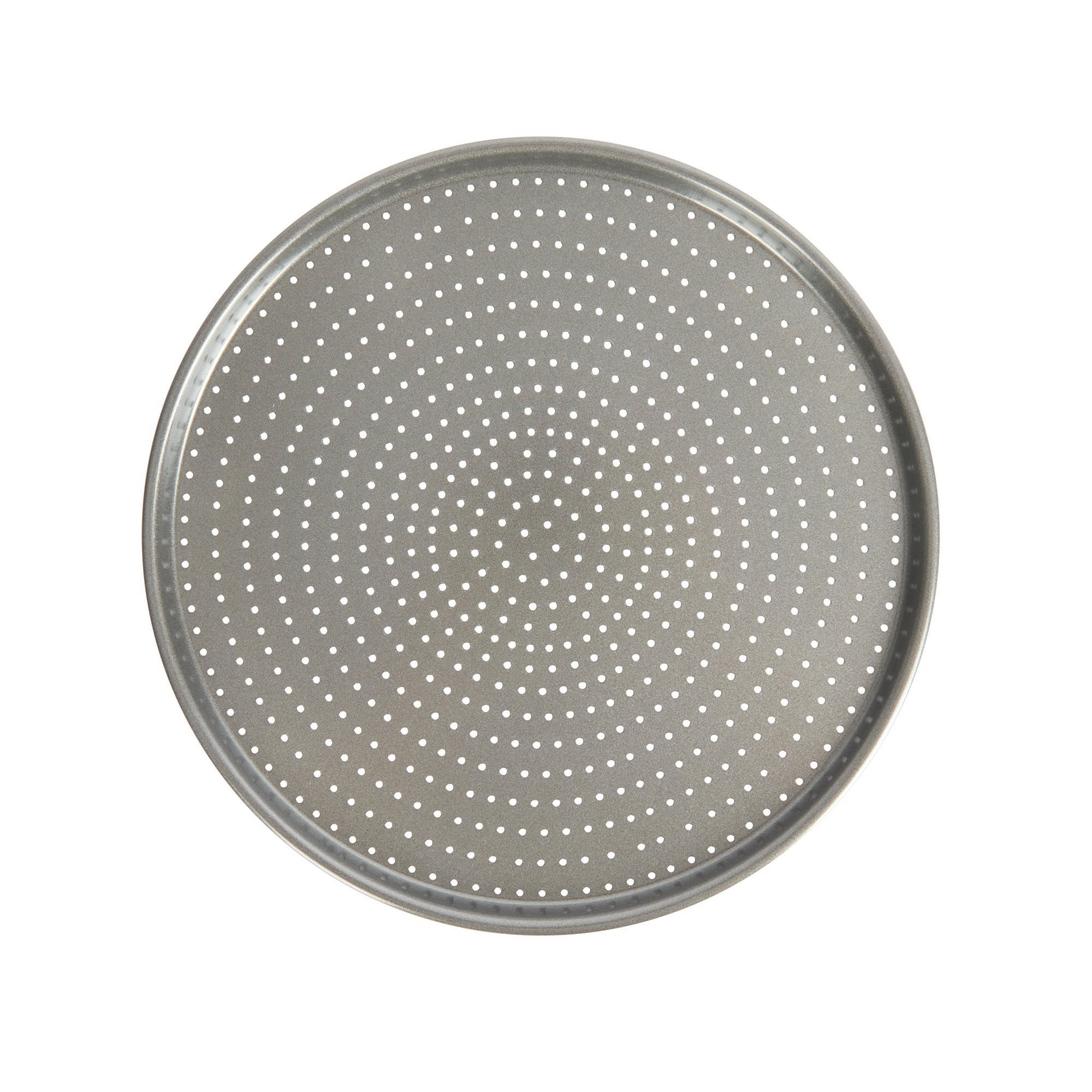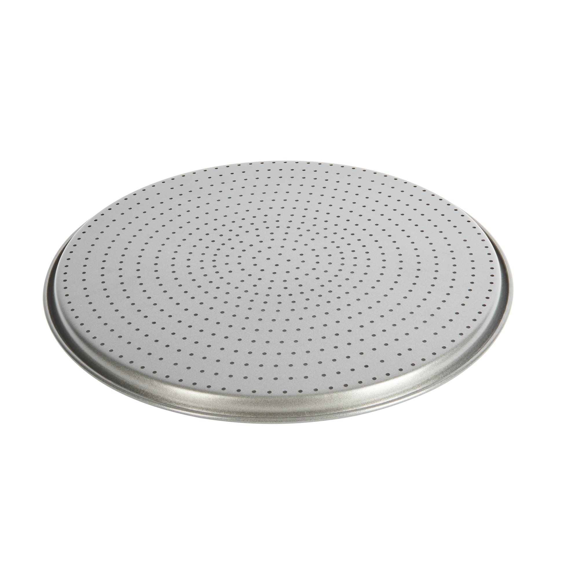 Покрита с двоен незалепващ слой и снабдена с отвори, които позволяват на въздуха да преминава през целия процес на печене, тавата ви предлага хрупкава горна част за пица, готова да бъде персонализирана с любимите ви съставки.