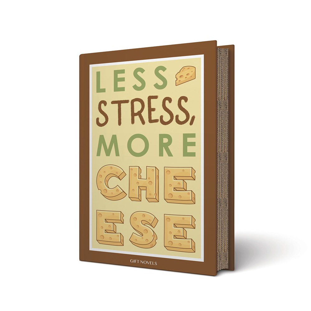 Комплектът е опакован в атрактивна подаръчна кутия с посланието "Less stress more cheese".